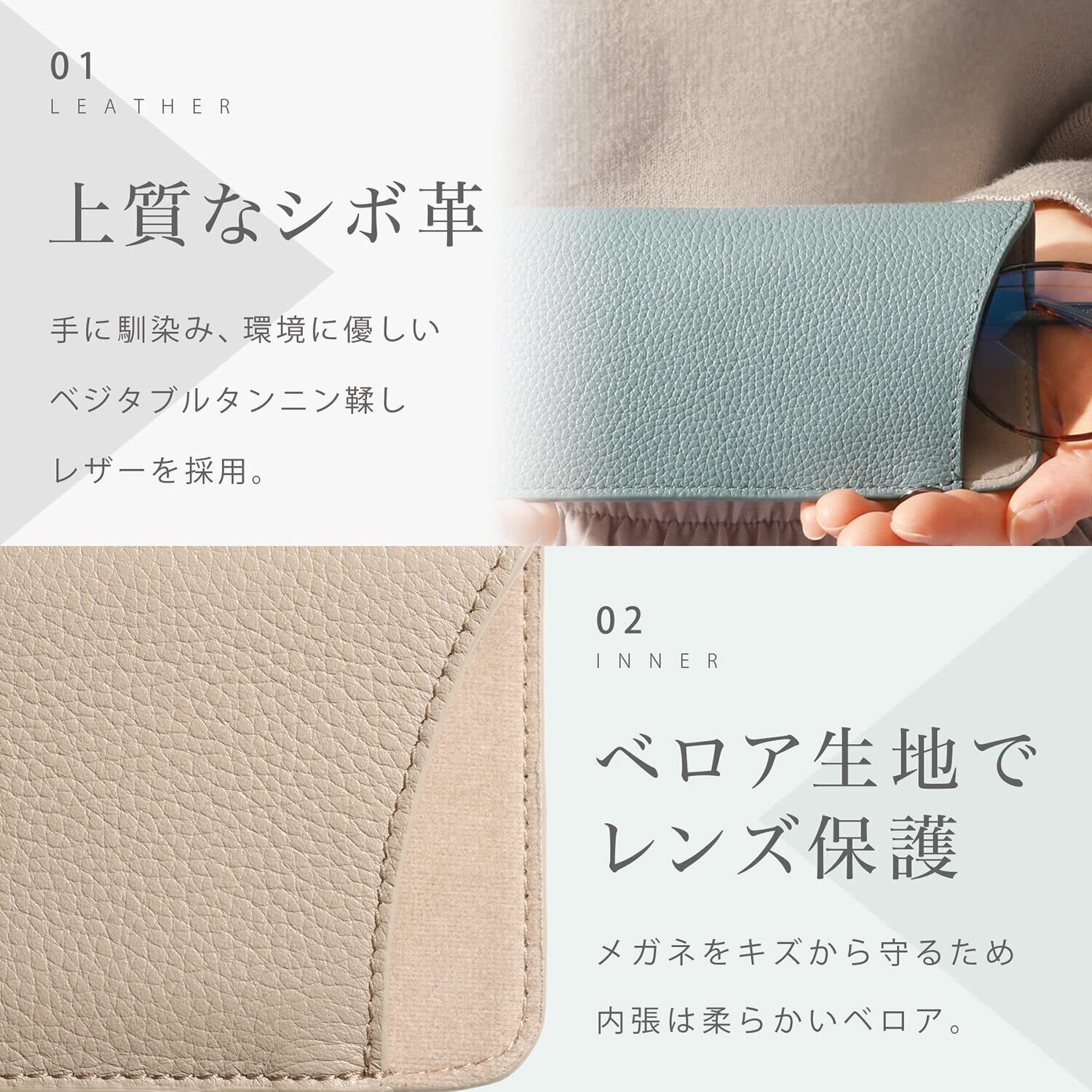 【 軽量50g、薄さ0.5cm 】どこにでも持って行けれる、たった50gの重さ。軽さだけでなく、薄さも0.5cmなのでミニポーチにもサッと収納可能。 【 落下も防げるDカン付き 】Dカンに、別売りのリールストラップを付ければお持ちのバッグの持ち手に取り付けることができ、メガネの落下を防げます。 【 環境に優しいベジタブルタンニン鞣しレザー 】 ベジタブルタンニン鞣しのシュリンクレザー仕様だから環境に優しいだけでなく自然と手に馴染みます。しかも、傷に強いためハードに使っても問題なし! 【 支持される5カラー 】グレージュをはじめとする柔らかいニュアンスカラーとスマートなブラック、レトロキャメル。BLUE SINCERE(ブルーシンシア)の他の製品とシリーズ使いがおしゃれでオススメです。