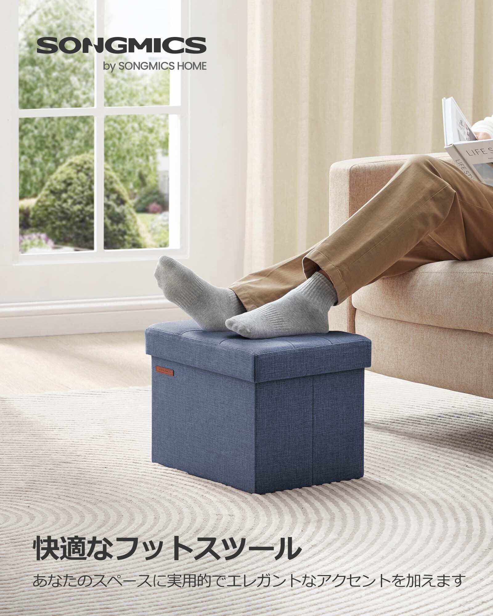 SONGMICS オットマン 収納 スツール 収納 ベンチ 収納ボックス 折りたたみ式 耐荷重130kg 収納 足置き 椅子 ボックス 持ち運びに便利 ふた付き 幅41×奥行き31×高さ31cm LSF102Q01