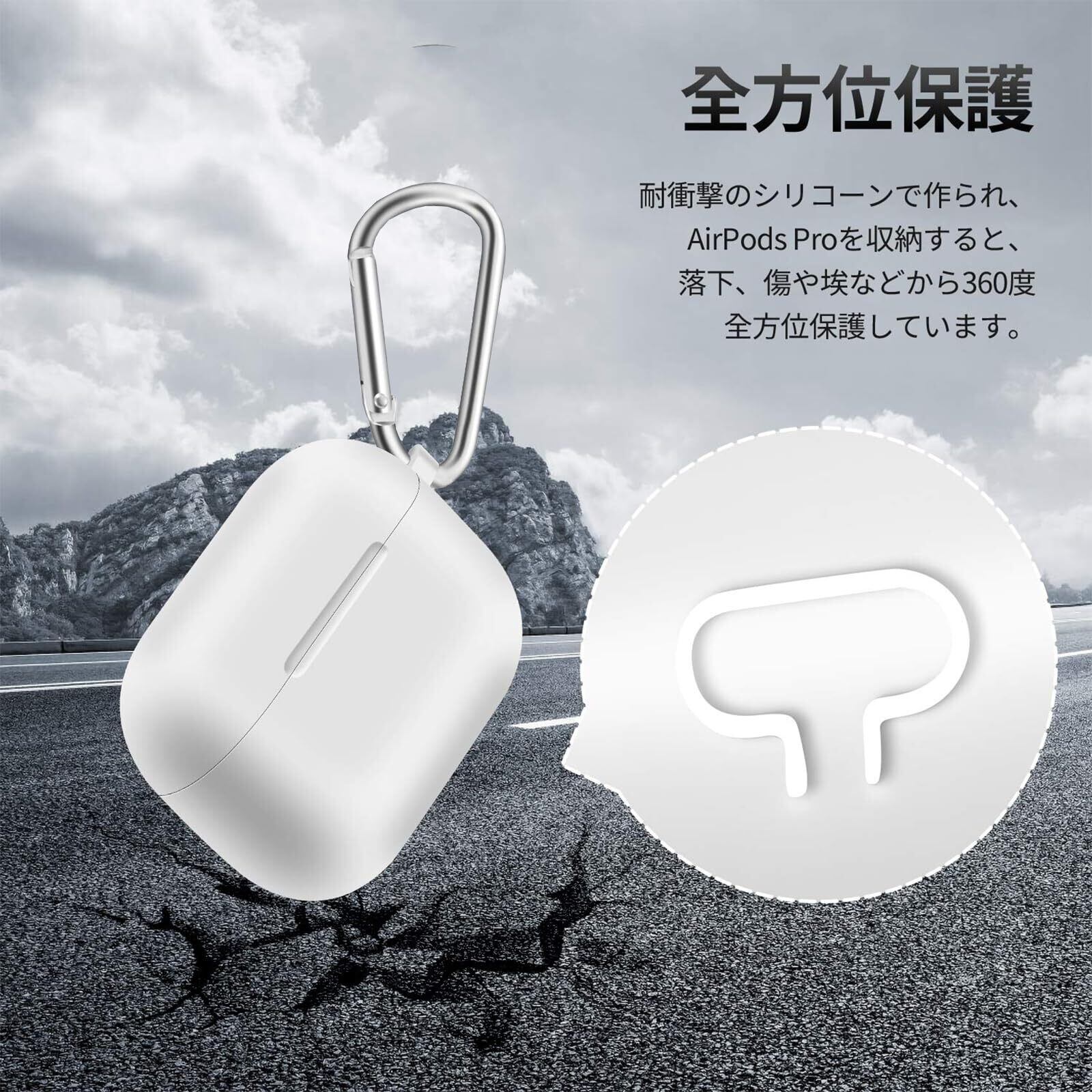 AirPods Pro/AirPods Pro 2 用 ケース (2024/2023/2022/2019) エアーポッズ プロ 用 シリコンケース 全面保護カバー 落下防止 耐衝撃 装着充電可能 防水 防塵 カラビナ付き AirPods Pro用のケース (ホワイト)