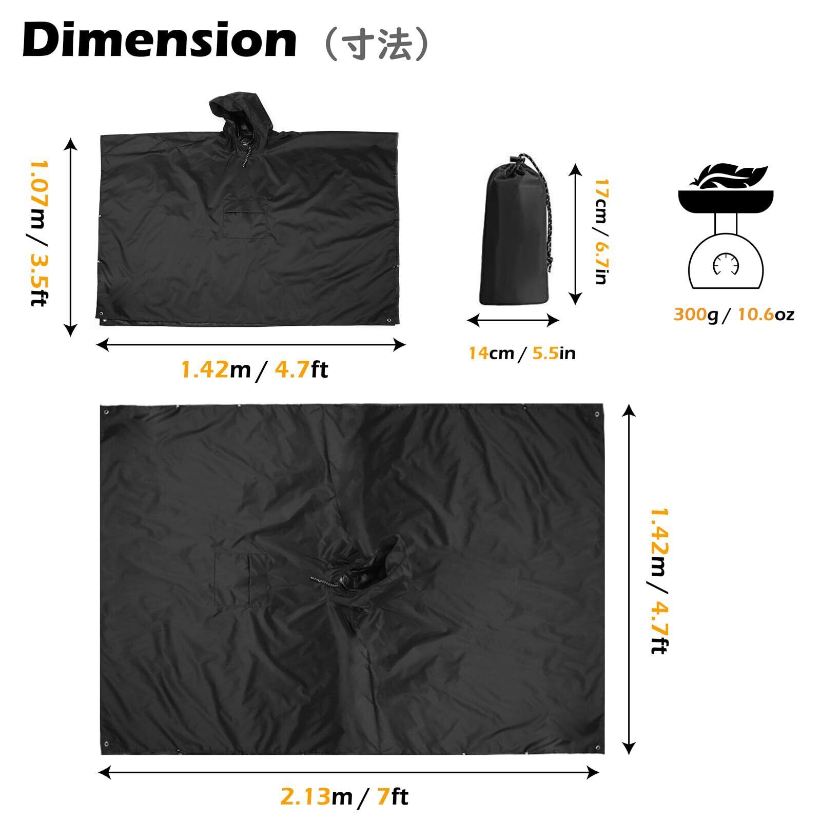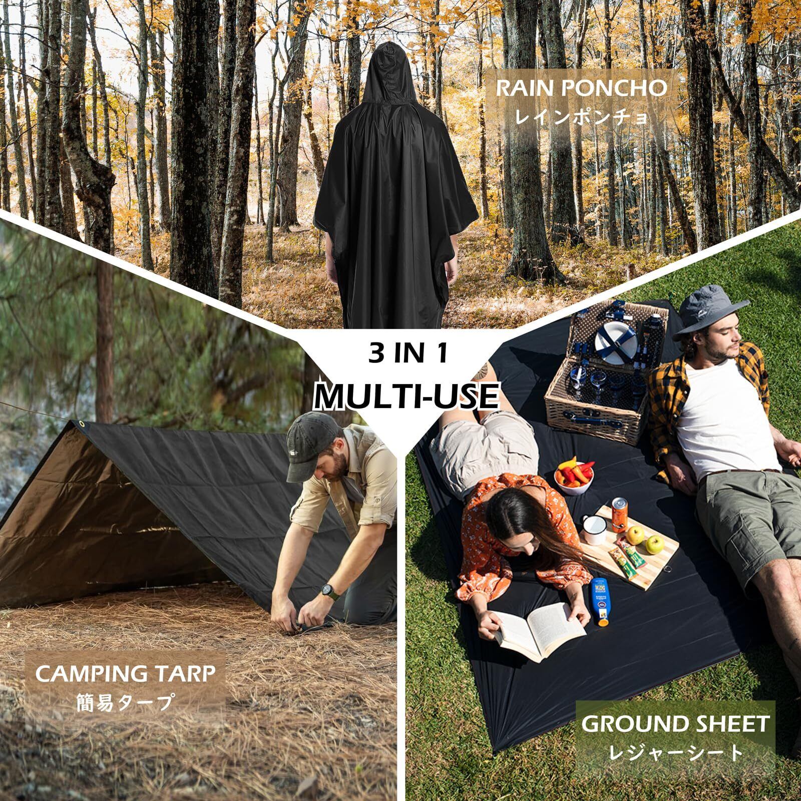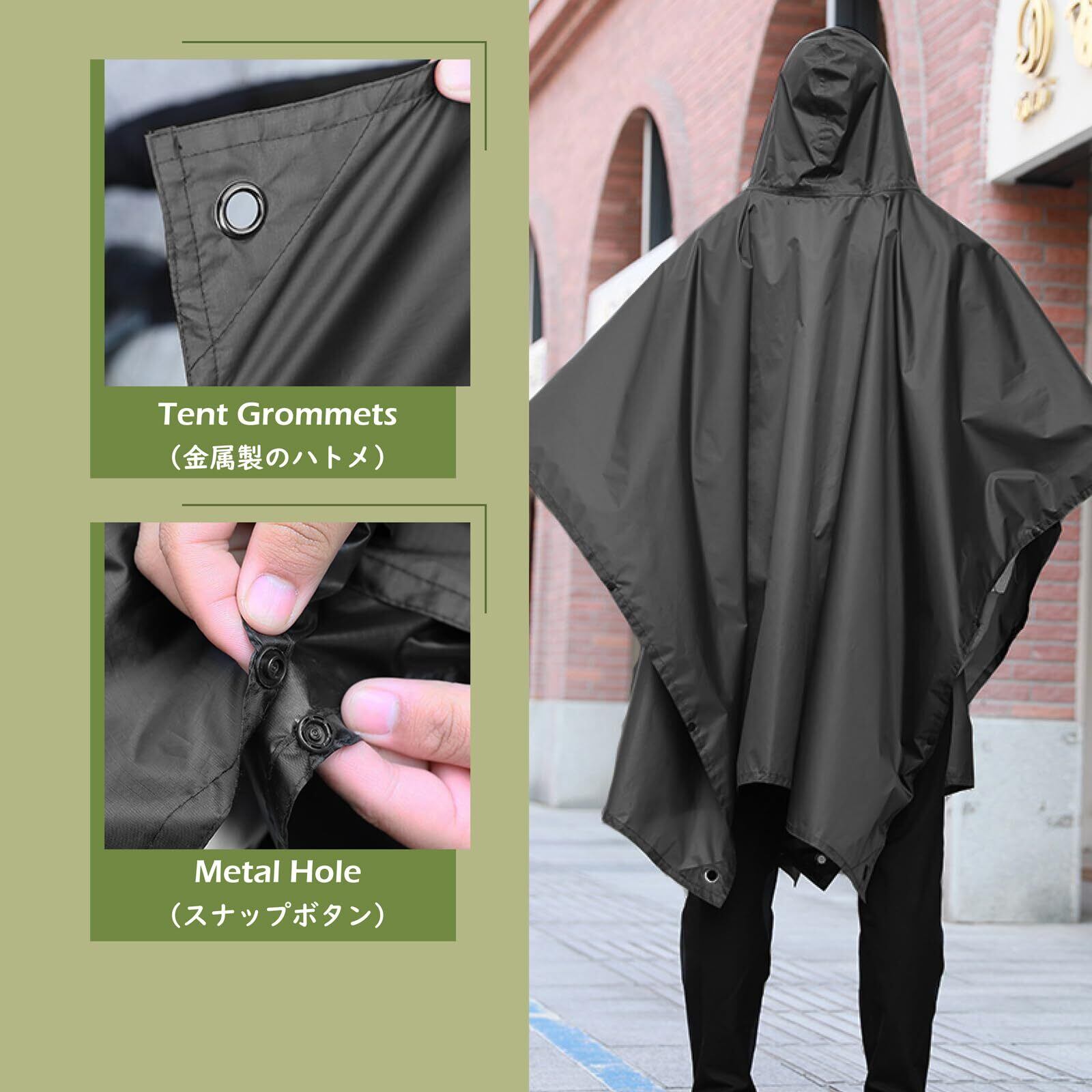 【多機能】レインポンチョ、レインコートだけでなく、長い毛布、サンシェードとして使えます。雨の日の朝のウォーキング、写真撮影時、野外音楽フェス、スポーツ観戦等じっとしている方なら良い雨具