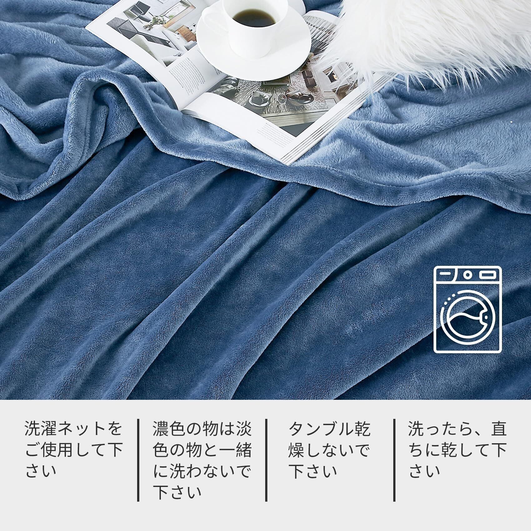 【洗濯可能】ご自宅で丸洗いできる。洗濯機の設定を「毛布モード」や「手洗いモード」に切り替えて洗いましょう。洗濯洗剤と柔軟剤と併せて洗濯すると柔らかさやふんわり感が増すのでおすすめ。因みに毛布を洗う頻度は月に1,2回が良いでしょう。
