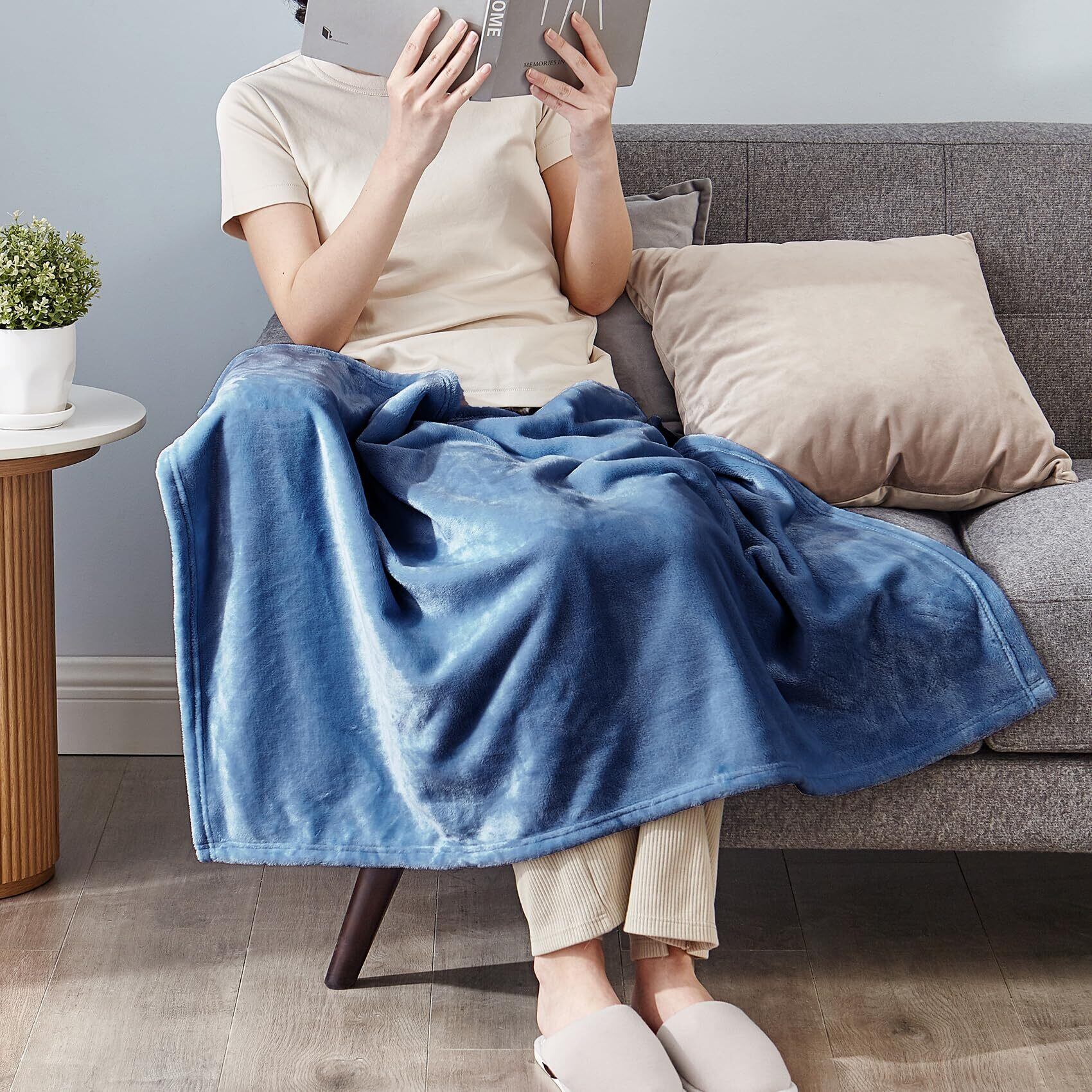 Hansleep 毛布 もうふ ひざ掛け 冬用 ひざかけ 膝掛け ブランケット ハーフケット マイクロファイバー 柔らかく肌触り 暖かい フランネル 洗える 静電防止 四季適用 (70x100,スモッグブルー)