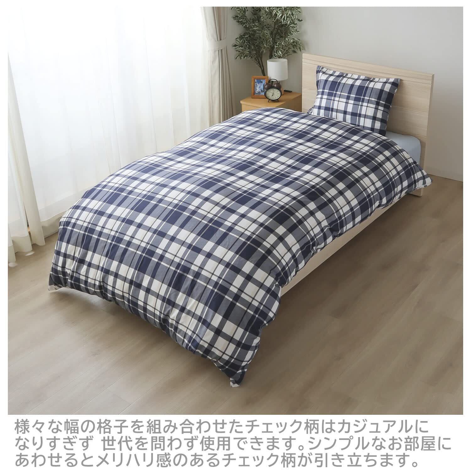 メリーナイト(Merry Night) 掛け布団カバー 「マドラスチェック」 ネイビー シングルロング 約150×210cm 両サイドファスナー ふとんが入れやすい 洗える シワになりにくい FF12111-72