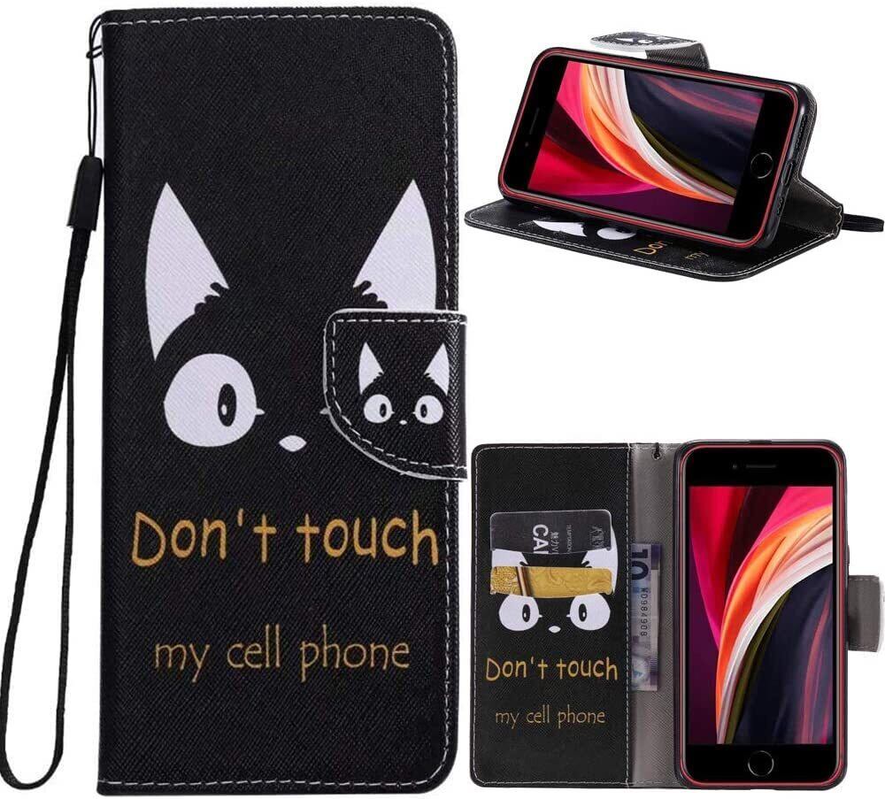 PCduoduo 対応iPhone SE 第3世代 2022 用のと互換性のケース スマホケース 手帳型 ケース対応 iPhone SE 第3世代 / iPhone SE 第2世代 2020 と互換性の用のカバー 猫 ストラップホール付きスタンド機能付き スマホカバー 財布型 マグネット付き シンプル カード収納 耐衝撃