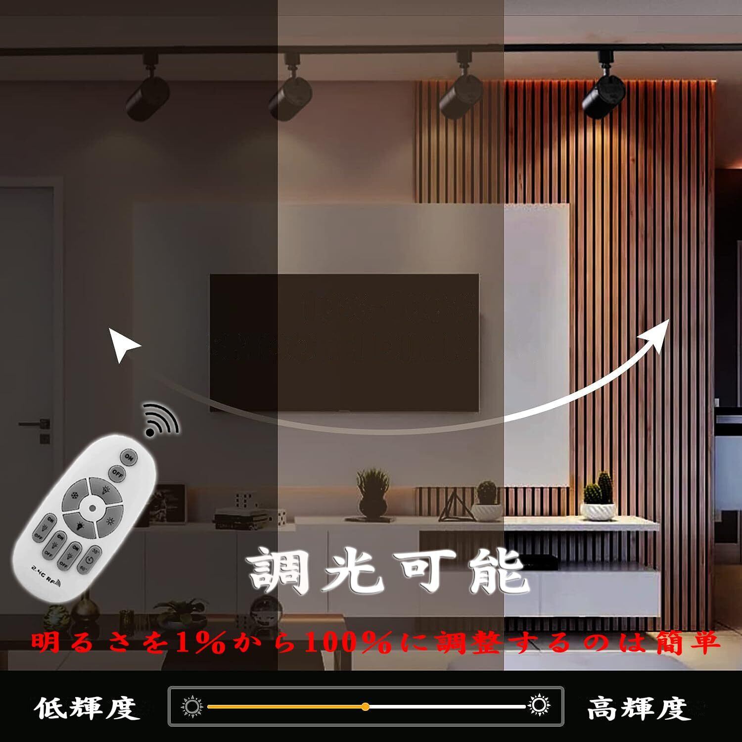 ライティングレール用スポットライト100W相当 調光 調色 リモコン付き 電球色昼光色昼白色 消費電力10W 大光量1000LM,照射角度調節可能,2.4GHz無線式遠隔操作,30分/60分お休みタイマー 常夜灯 光色切り替え PSE認証済み 日本語取扱説明書 ブラック 4個セット(電池別売)