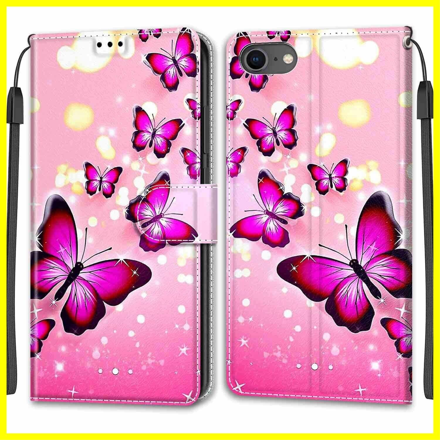 iPhone SE ケース 第2世代 第3世代 iphone8 iphone7 手帳型 スマホケース 携帯カバー PUレザー iphoneケース se カード収納ケース マグネット式 スタンド機能アイフォンse ケース4.7インチ対応 360度保護 (iPhone SE2 iPhone SE3 iPhone8 iPhone7) ピンクの蝶