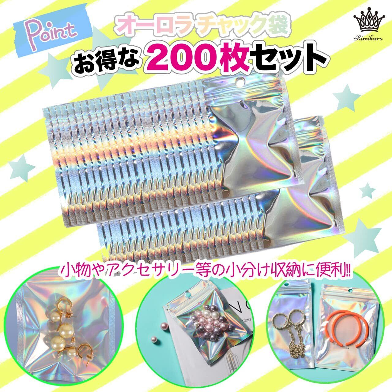 Rimikuru オーロラ チャック袋 200枚セット アルミ袋 収納袋 厚手 ジッパー付き袋 小さい (6cm×10cm)