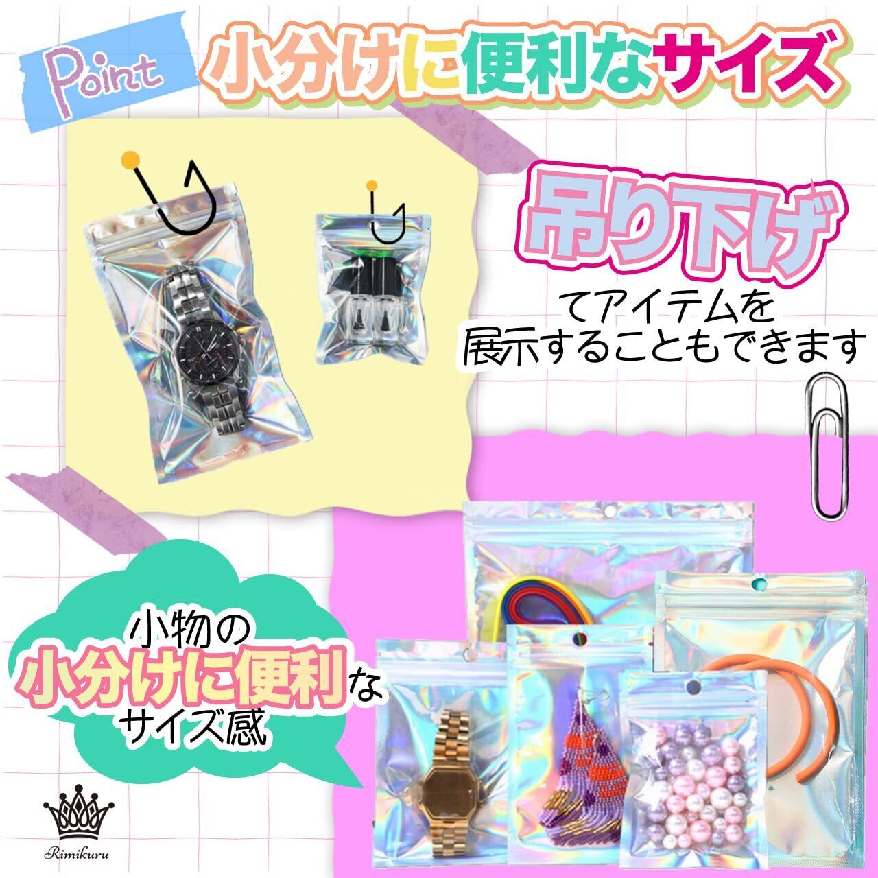 小分けに便利なサイズ:適度な大きさのオーロラ チャック袋になっておりますので、小物の小分け・個包装に便利なサイズとなっております。穴が空いている仕様なので、吊り下げてアイテムを展示することもできます。