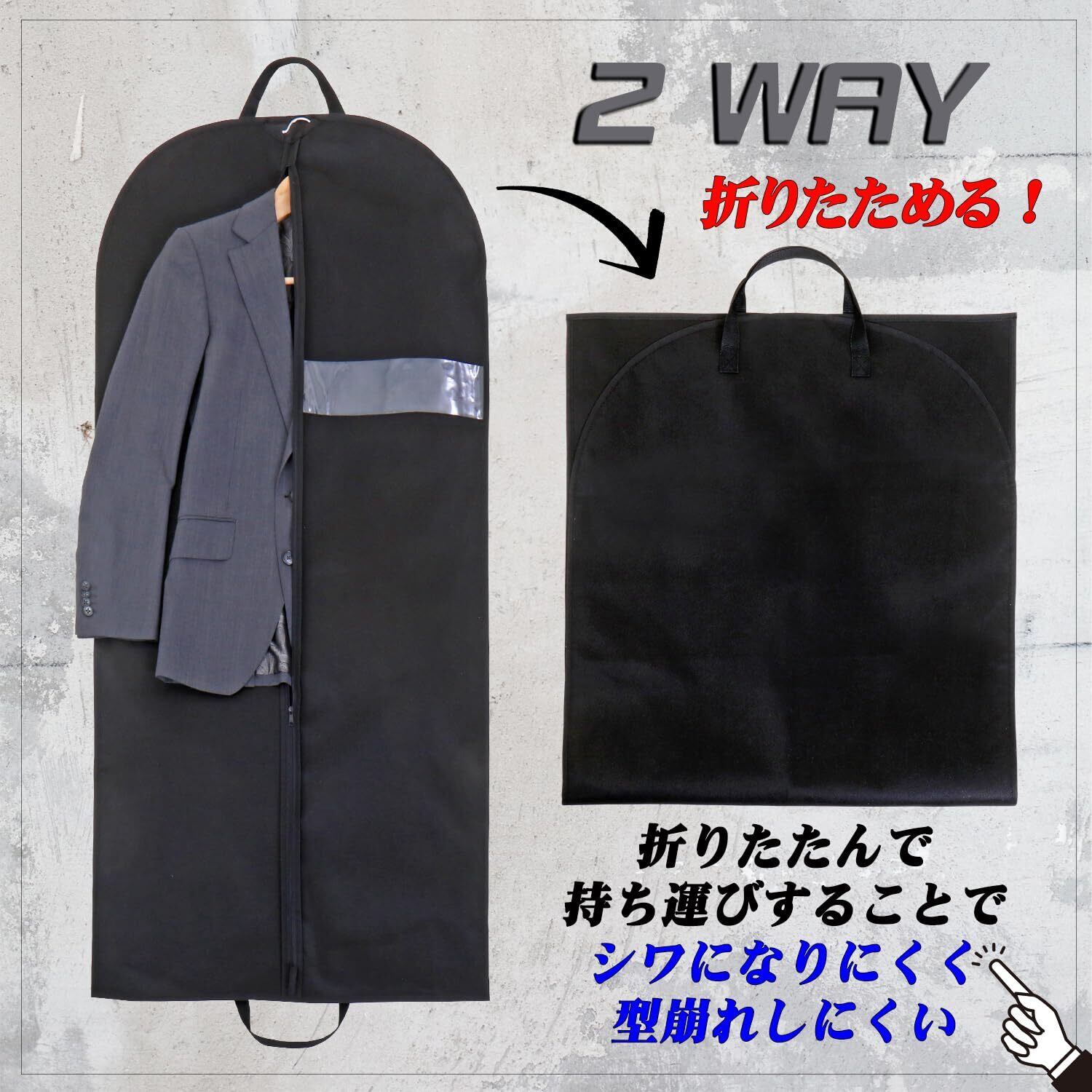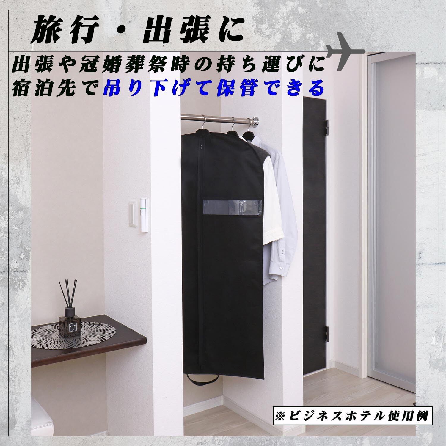 【通気性に優れた不織布製】:通気性の良い不織布でスーツや洋服を湿気やホコリから守り大切に保管。