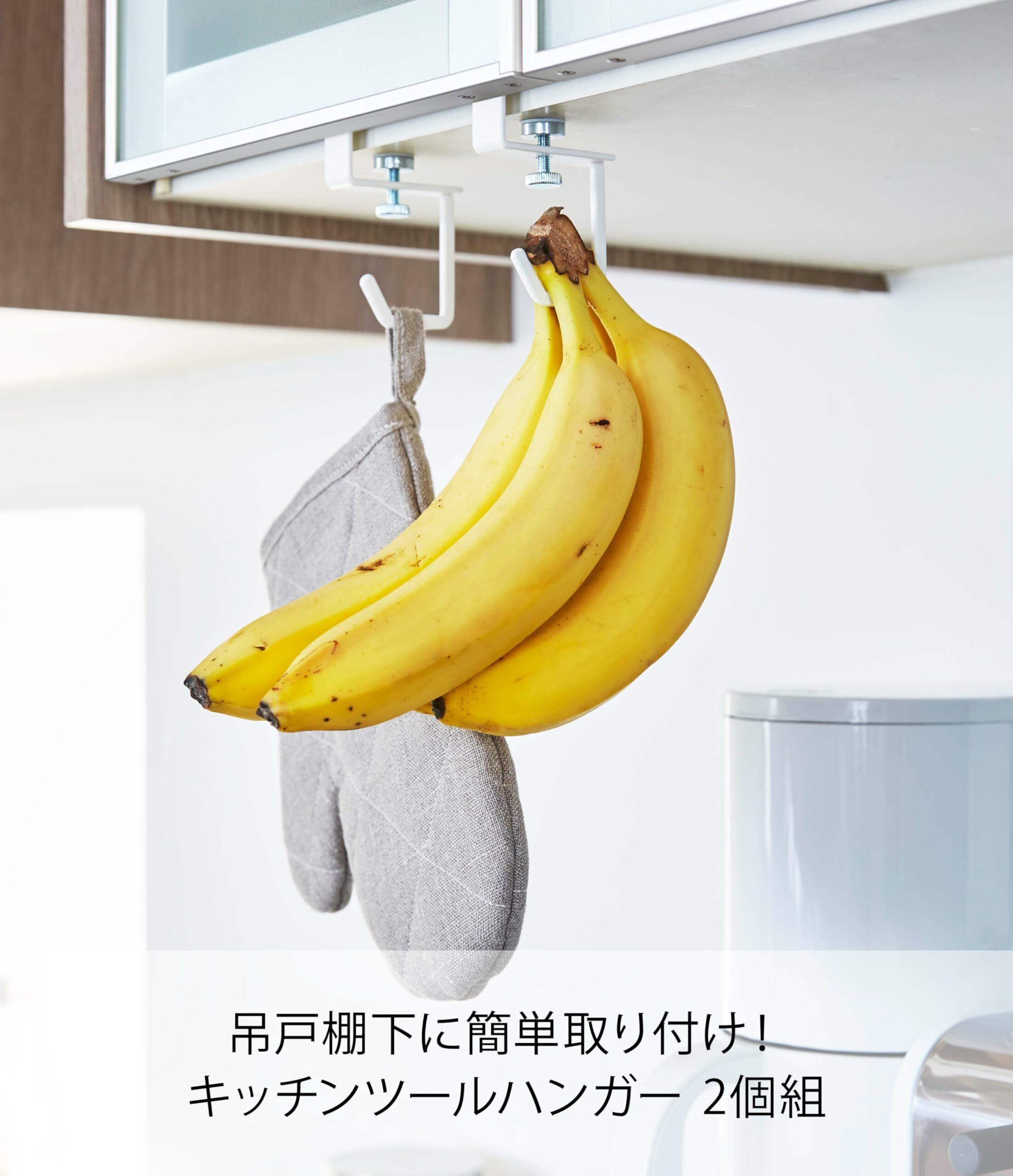 吊り戸棚に簡単取り付けのキッチンツールハンガー。ピンポイントで欲しいところに!