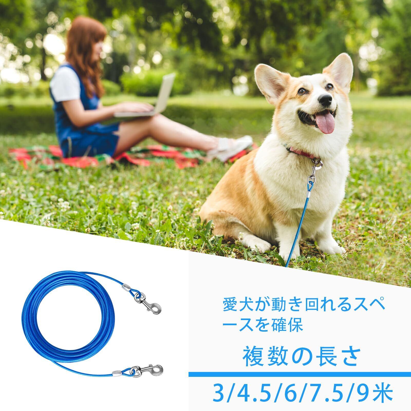 広い適用範囲:キャンプ、公園、中庭、庭などの屋外活動では、この犬用ケーブルを使ってペットを保護することができます。持ち運びに便利で、キャリングバッグに収納できます。
