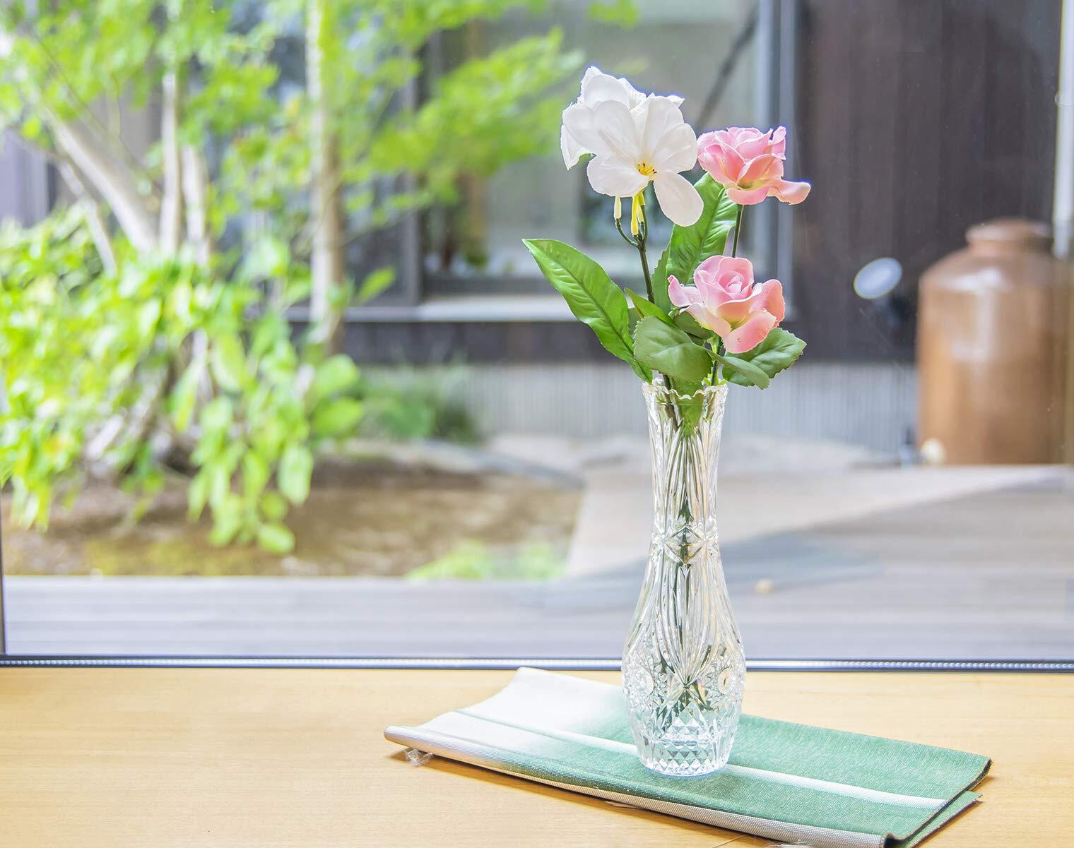 クリスタルな輝きが美しいガラスの一輪挿し。