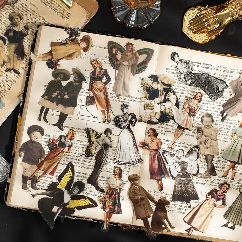 120枚 シール フレークシール コラージュ 素材 ペーパー 素材紙 レースユートピアステッカーレトロフィギュア 海外韓国 シール帳 ,メモ用紙ノート素材、日記装飾用品 (modengshidai)