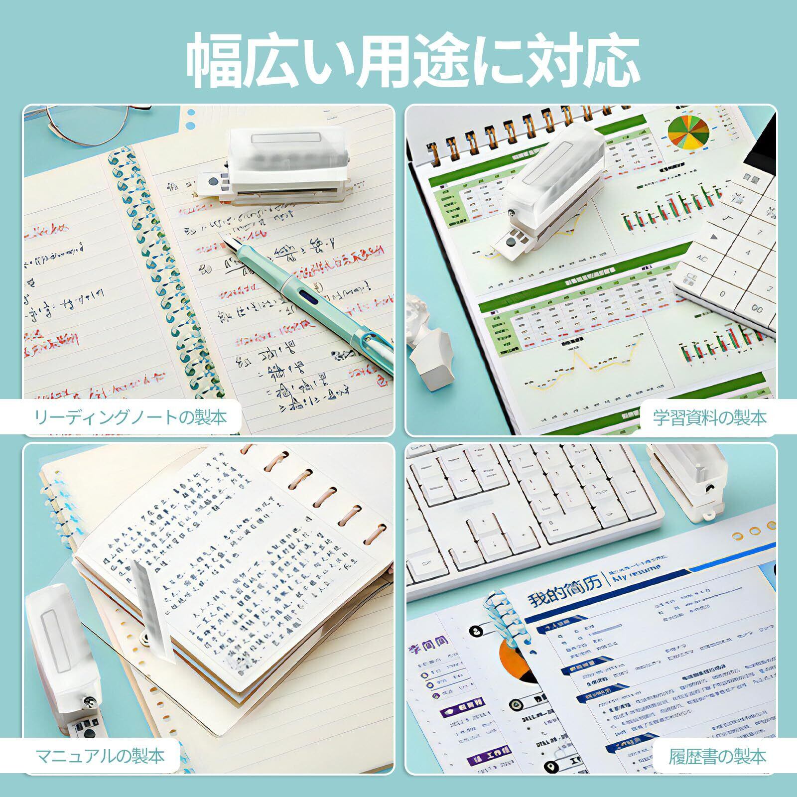 【高品質の素材】:ルーズリーフパンチ 本体は高品質のプラスチックで作られており、丈夫で耐久性があり、壊れにくく、防水性や耐摩耗性があります。刃先は炭素鋼で作られており、優れた切れ味を持ち、軽い力で穴を開けることができます。従来の穴あけパンチと比べて力を省力化することができます。力が弱い人にもおすすめです。A4(30穴)/A5(20穴)/B5(26穴)それぞれの紙に穴をあける手順と方法は、図5を参照してください。