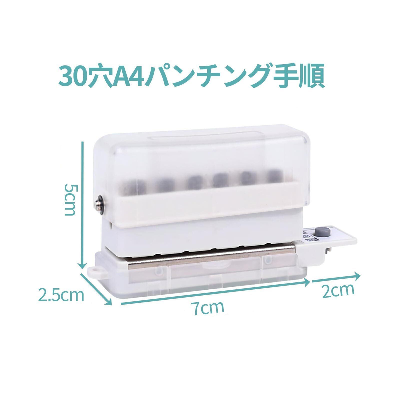 【使いやすい】:ルーズリーフパンチ サイズ:90mm、穴数:6穴、穴径:5.5mm、奥行き:7mm、穴間隔:9.5mm、穿孔枚数:2枚。この穴あけパンチ1本でA4(30穴)/A5(20穴)/B5(26穴)の3種類の紙に対応できます。ルーズリーフパンチ 穴あけパンチを使用すると、誰でもきれいな穴をあけることができます。穴あけパンチの底部にはダストトレーが付いており、紙くずの散乱を防げます。