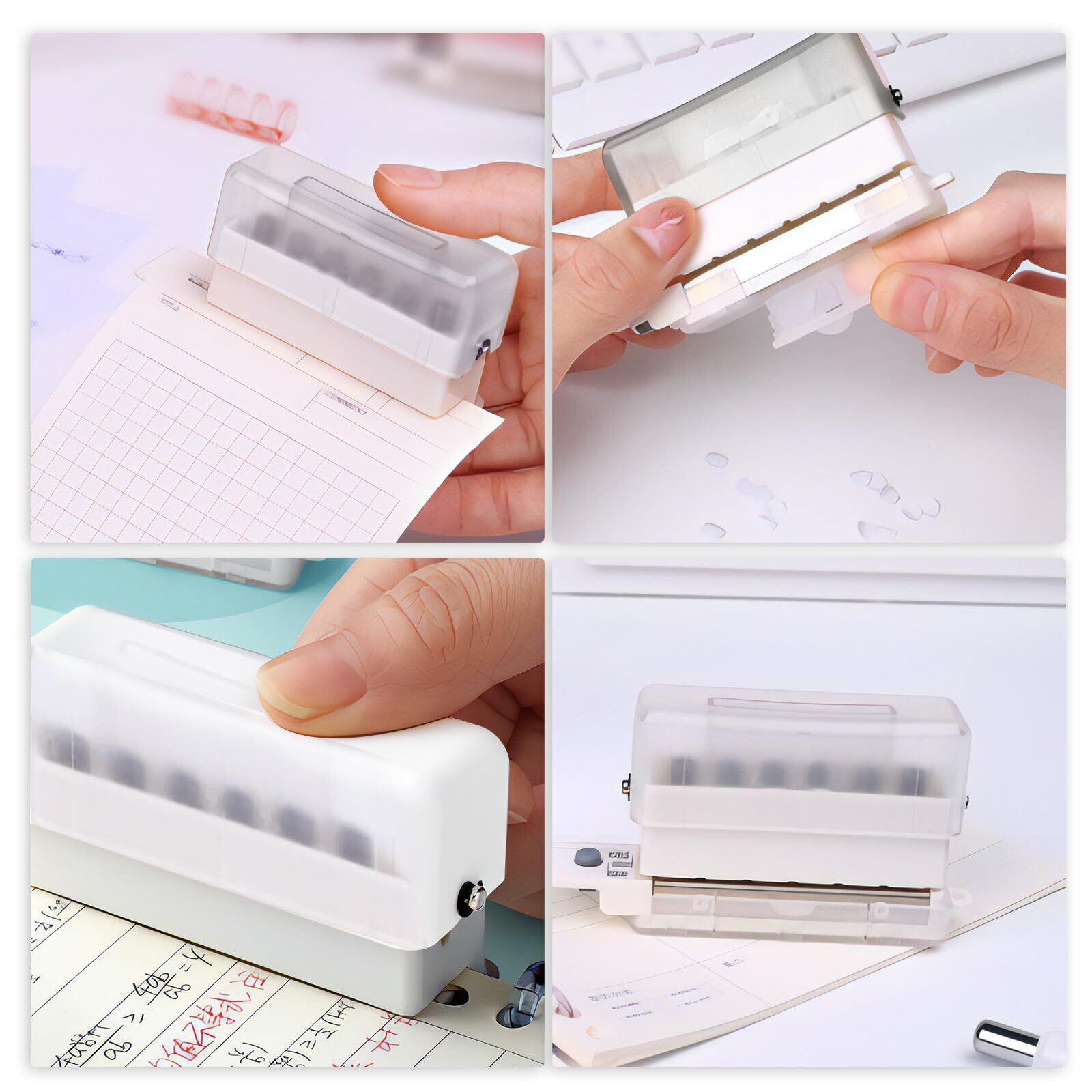 【持ち運び便利】:ルーズリーフパンチ どこにでも持ち運び、ノートブックやファイルをさまざまな状況で整理することができます。吊り下げる用の穴もあり、キーボルダーなどに掛けて収納することができ、持ち運びに便利です。コンパクトなサイズなので、デスクの上に置いても邪魔になりません。持ち運びが多い場合や使用場所を移動することが多い場合におすすめです。