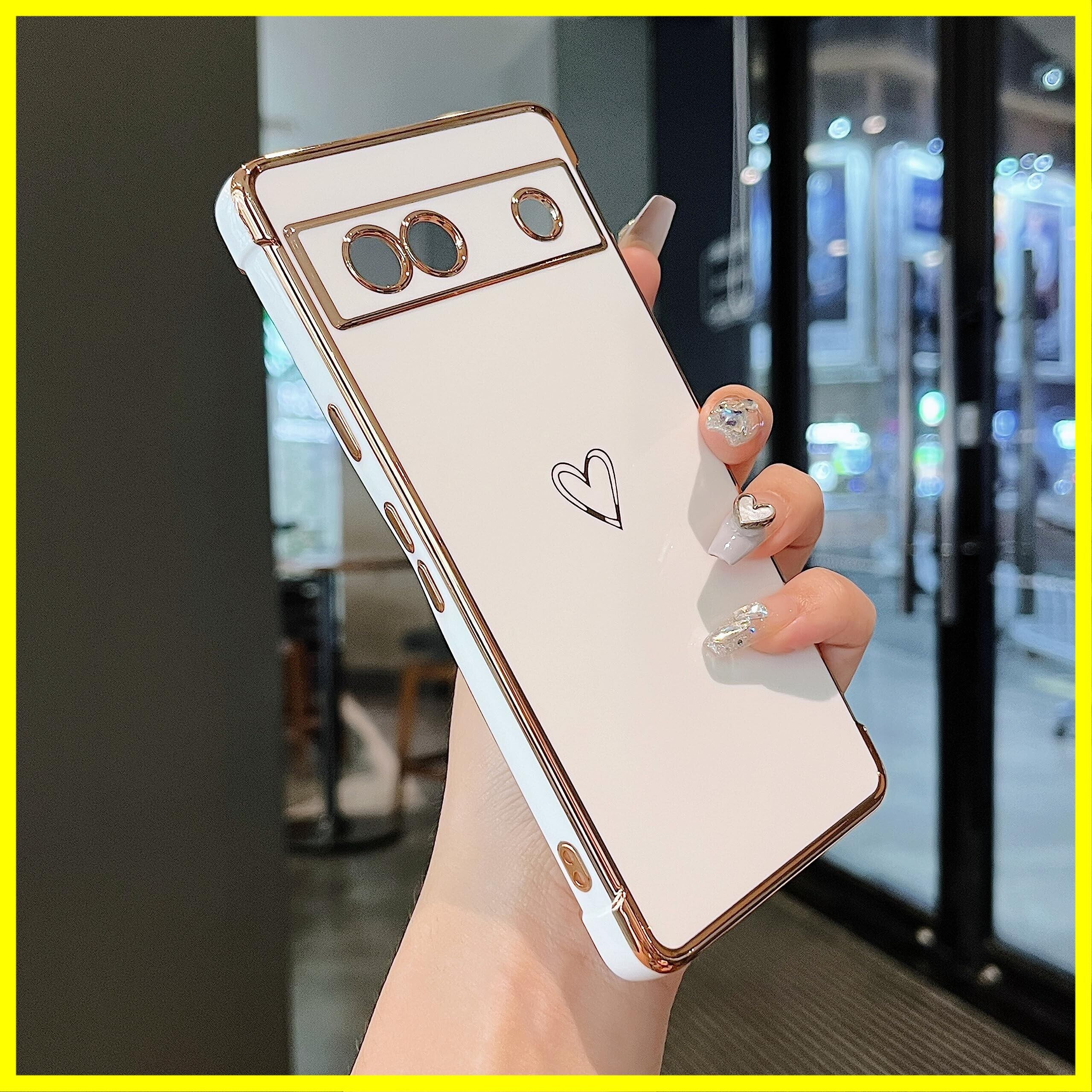 ZTOFERA Google Pixel 7a 用 ハートケース 柔軟な TPU シリコン メッキ加工 ソフト 軽量 耐衝撃 おしゃれ 韓国 可愛い Google Pixel 7A ケース 携帯カバー 女性 心パターン スマホケース ワイヤレス充電対応 (ホワイト)