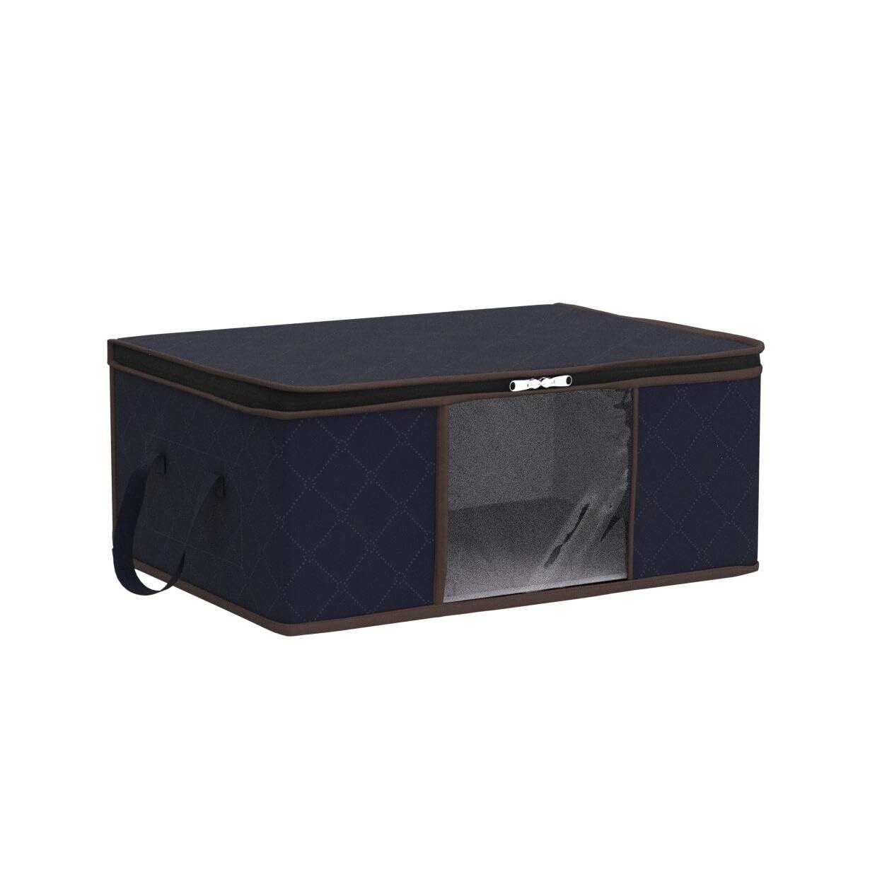Lifewit 衣類収納バッグ 折りたたみ式収納ビン クローゼットオーガナイザー 強化ハンドル付き 丈夫な生地 クリアウィンドウ セーター、コート、Tシャツ、毛布用 6パック 35L ダークブルー