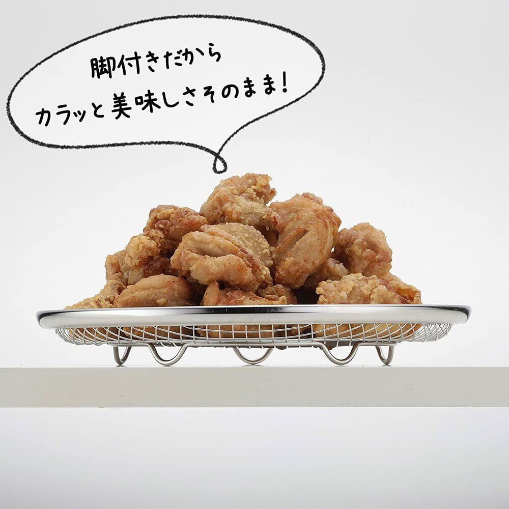 下村企販 ざる カラッと 油切り皿 大 【日本製】 食洗機対応 油切れが早い 大きなアミ目 卓上に出せる 平ザル 揚げ物 野菜の水切り ステンレス 22.6cm ママクック 燕三条 40252