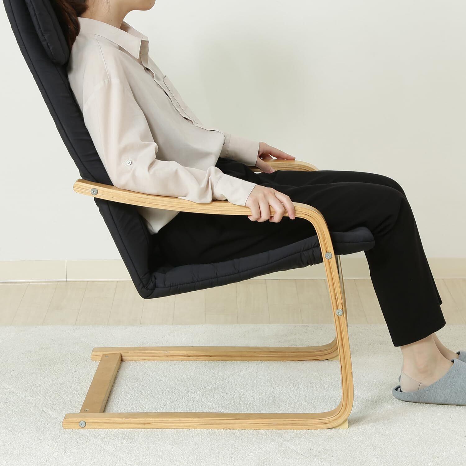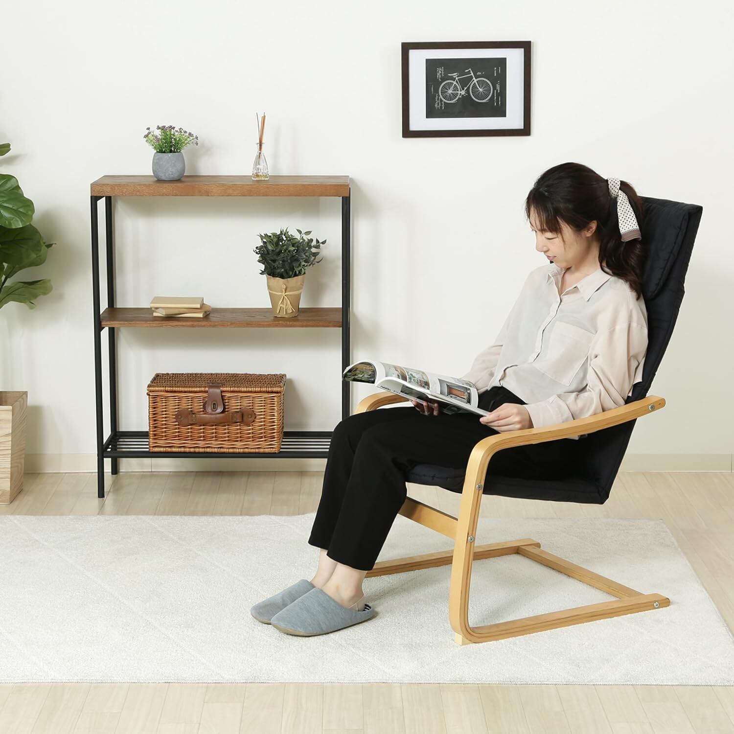 不二貿易 リラックスチェア 1人掛け 幅59×奥行77×高さ102cm ブラック 木製 曲木 組立商品 パーソナルチェア 一人掛けソファ スリム 84055