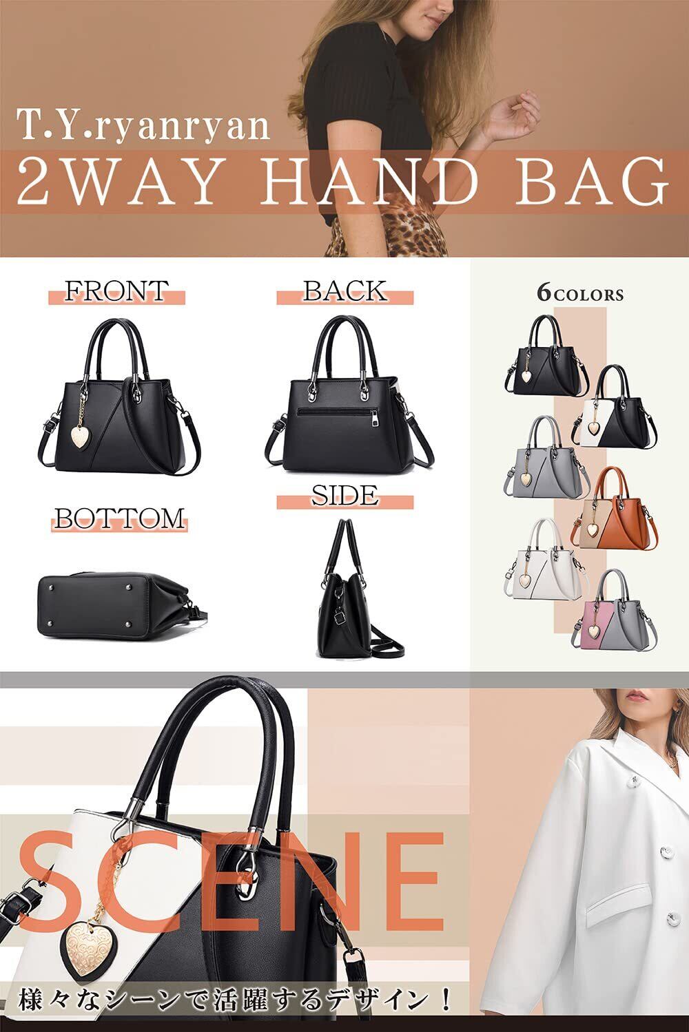 [T.Y.ryanryan] ショルダーバッグ レディース 斜めがけ ハンドバッグ 肩掛け PUレザー ハート 型