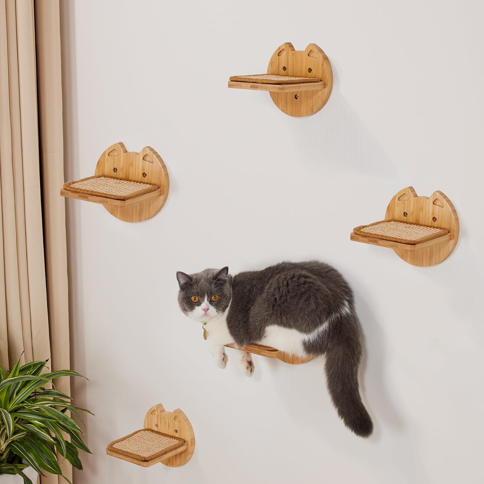 【取り付けやすい】➬垂直板を接続するために2本の短いネジを簡単に使用し、さらに2本の長いネジを使用して全体を壁に固定します。上質な竹の材質は、締付時に荷重力が強く、壁に掛けても安定しています。どんな活発な猫でも安全に使用できます。
