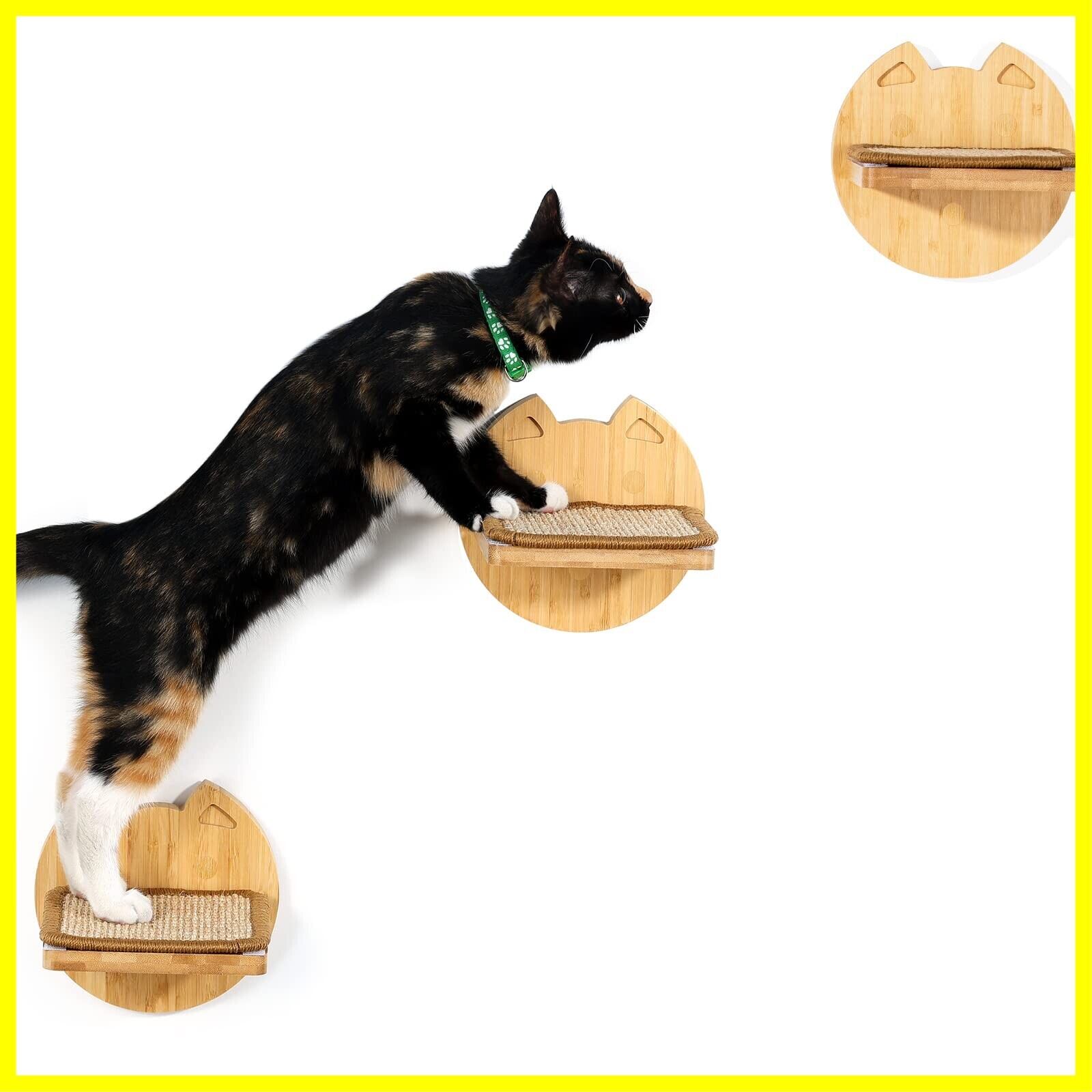 Yangbagaキャットウォーク3つ入り木製壁掛け式猫用ステップ サイザル麻とぎ爪パッド付き キャットステップ 猫用家具 猫 爪研ぎ 遊び場 取り付け簡単
