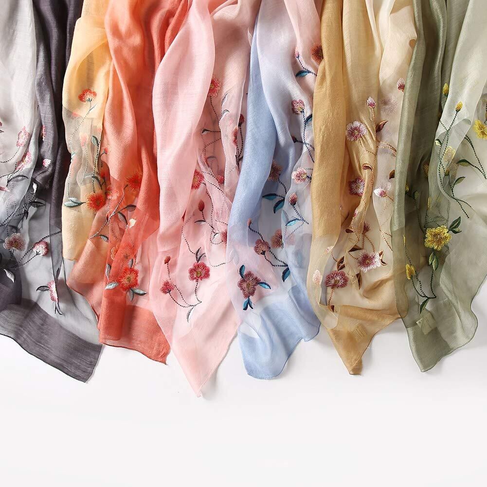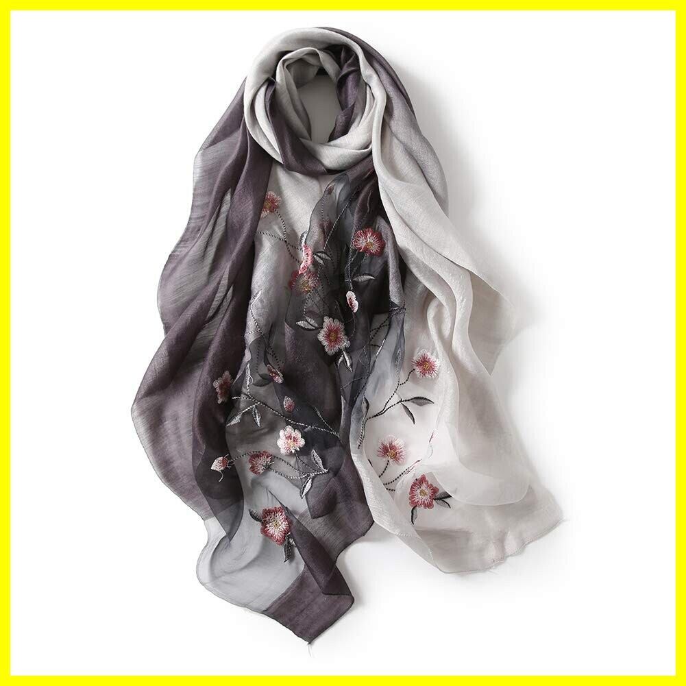 [ANMIDA] アンミダ 超薄手 大判ストール スカーフ マフラー ストール 花 ショール 刺繍 大判ストール シルク レディース 春夏 上品 おしゃれ 海 旅行 日焼け防止 UV対策