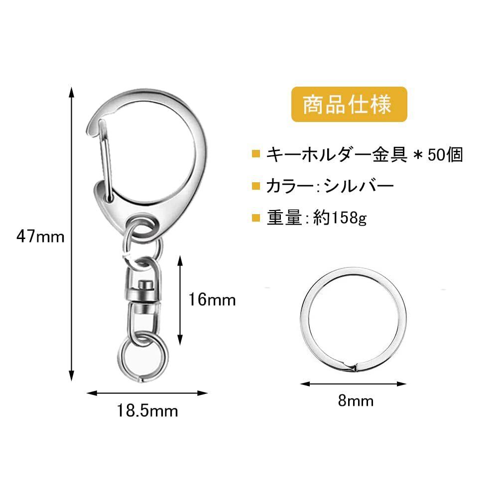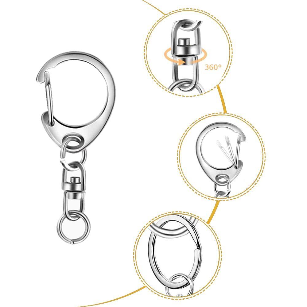 キーホルダー金具 50個入 手作り 素材 キーホルダーパーツ 回転カン付き ワンタッチキーホルダー金具 DIY 手芸用品 ハンドメイド アクセサリー (シルバー)