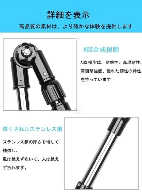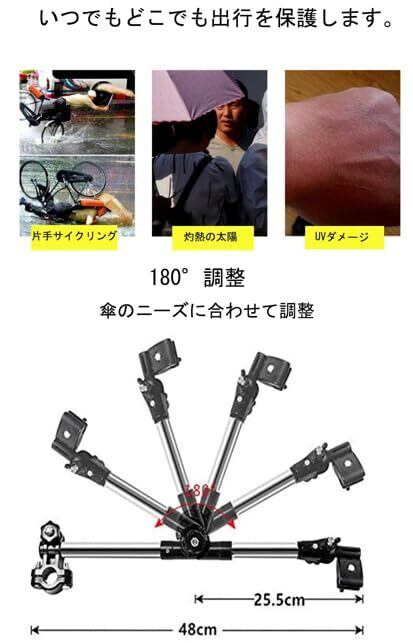 【360度回転・長さ調整可能】360°+ 180°の双方向調整を実現し、傘の方向と傾きを自由に調整できます。スタンドの長さが42㎝まで調整できます。ユーザーの身長や自転車などのハンドルの高さに合わせることができて、ご要望より傘を固定できます。