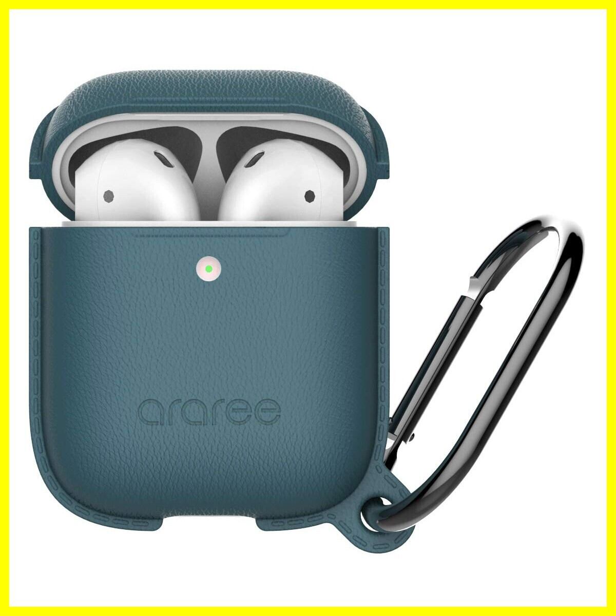 【araree】 AirPods with Wireless Charging Case 対応 ケース カラビナ リング 付 耐衝撃 レザー テイスト シリコン カバー 衝撃 吸収 傷防止 落下防止 保護 アクセサリー [ AirPods 2 第2世代 エアーポッズ2 対応 ] POPS フォレストブルー