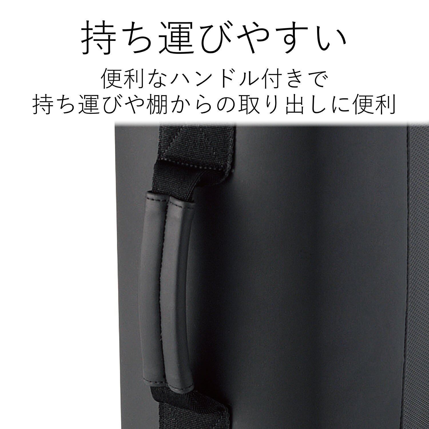 ■持ち運びや棚からの取り出しに便利なハンドルが付いています。