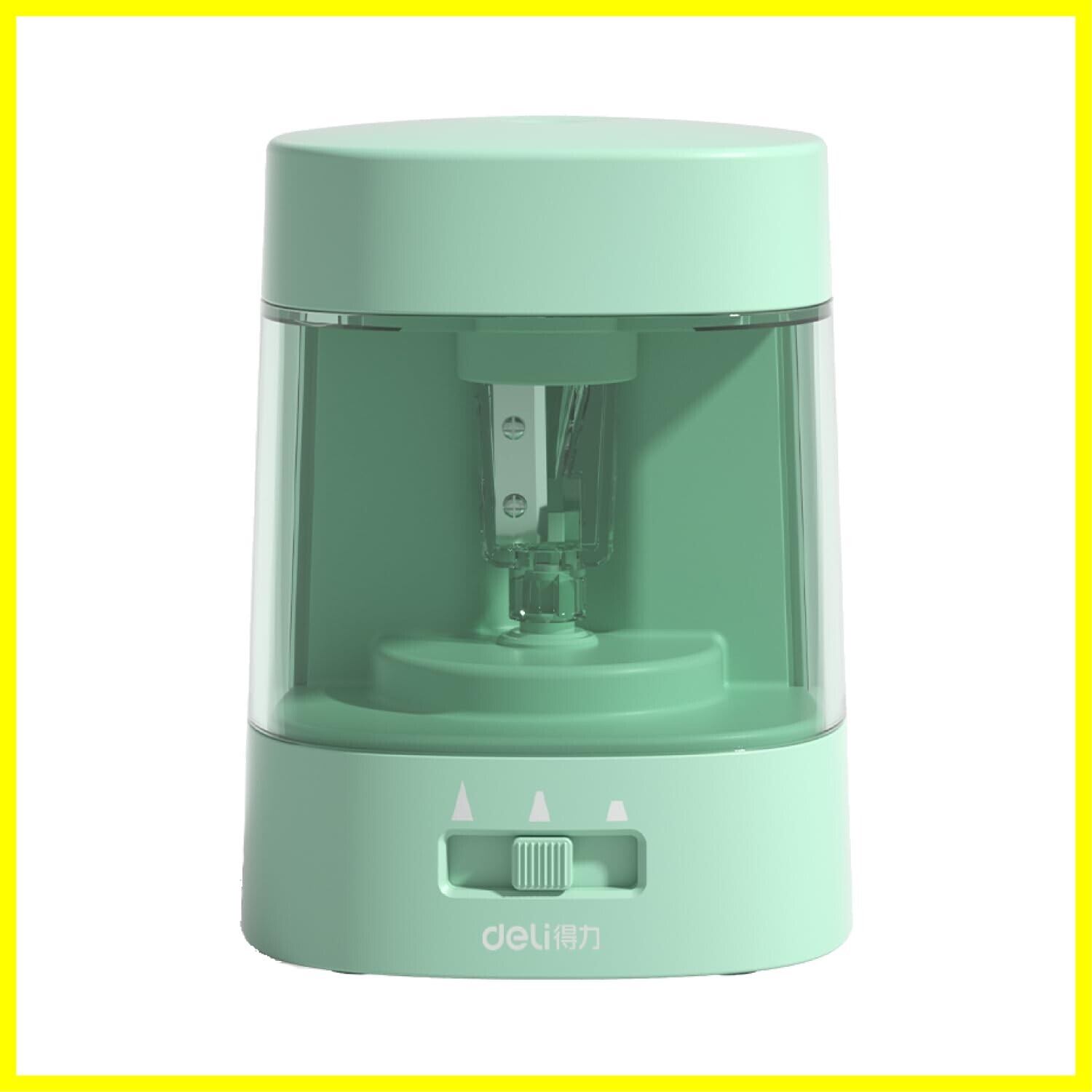 【インクのチップス】 deli 電動鉛筆削り (グリーン) 対応可能な鉛筆 : 鉛筆/色鉛筆 (直径6.5-8mm) 商品番号 : VA3 / ペンシルシャープナー えんぴつ削り 文具 文房具 [シンプルでコンパクトなデザイン] [かわいいパステルカラー] [お子様の力の強さでも簡単に削れる] [芯の太さが3段階で調節可能] [耐久性のある丈夫な合金鋼カッター]