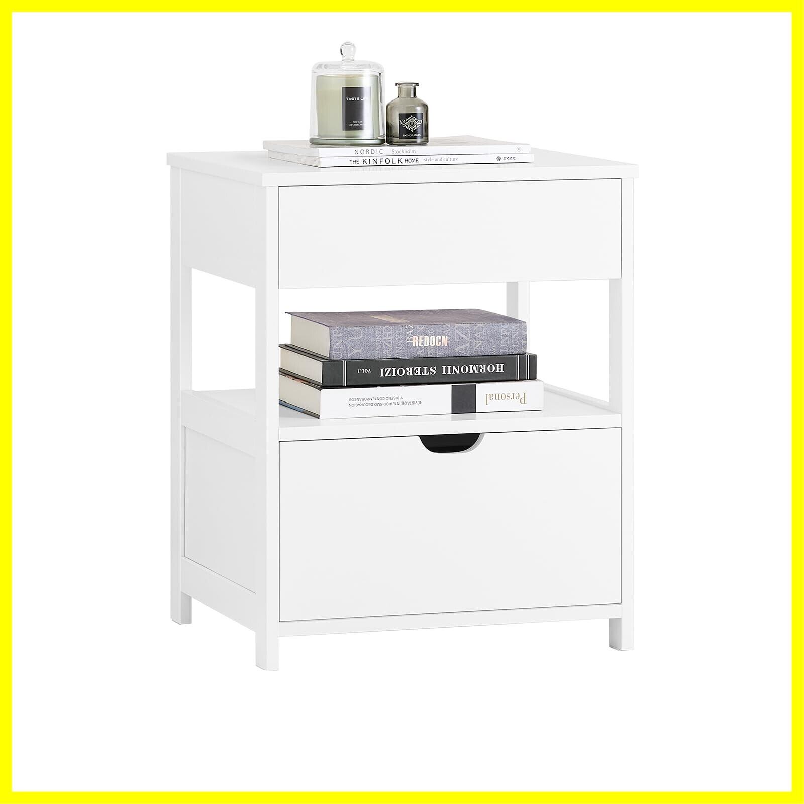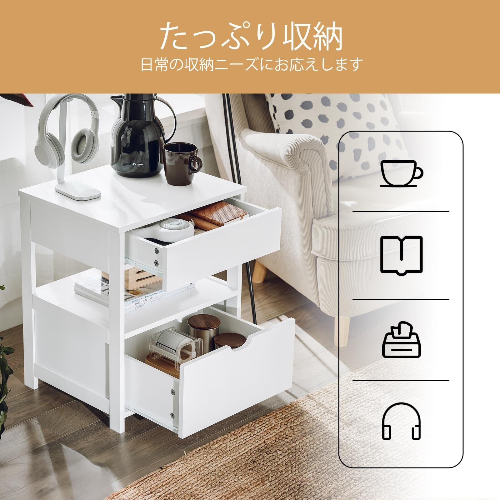 SoBuy ベッドサイドテーブル ナイトテーブル ベッド横 テーブル 幅45×奥行き37.5×高さ55cm おしゃれ 北欧 電話台 サイドチェスト ベッドテーブル ベッドサイド 収納(FRG258-W/ホワイト)