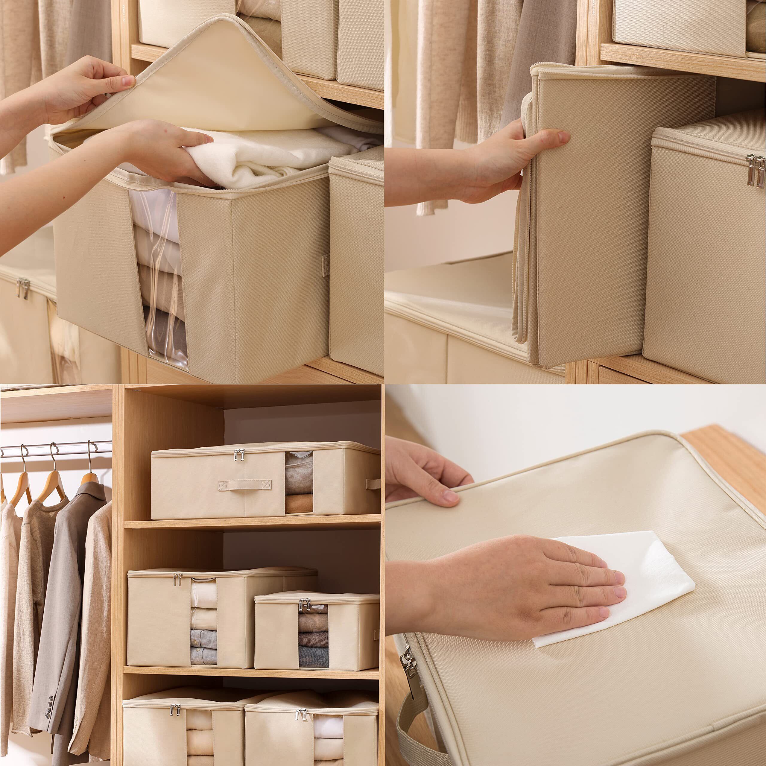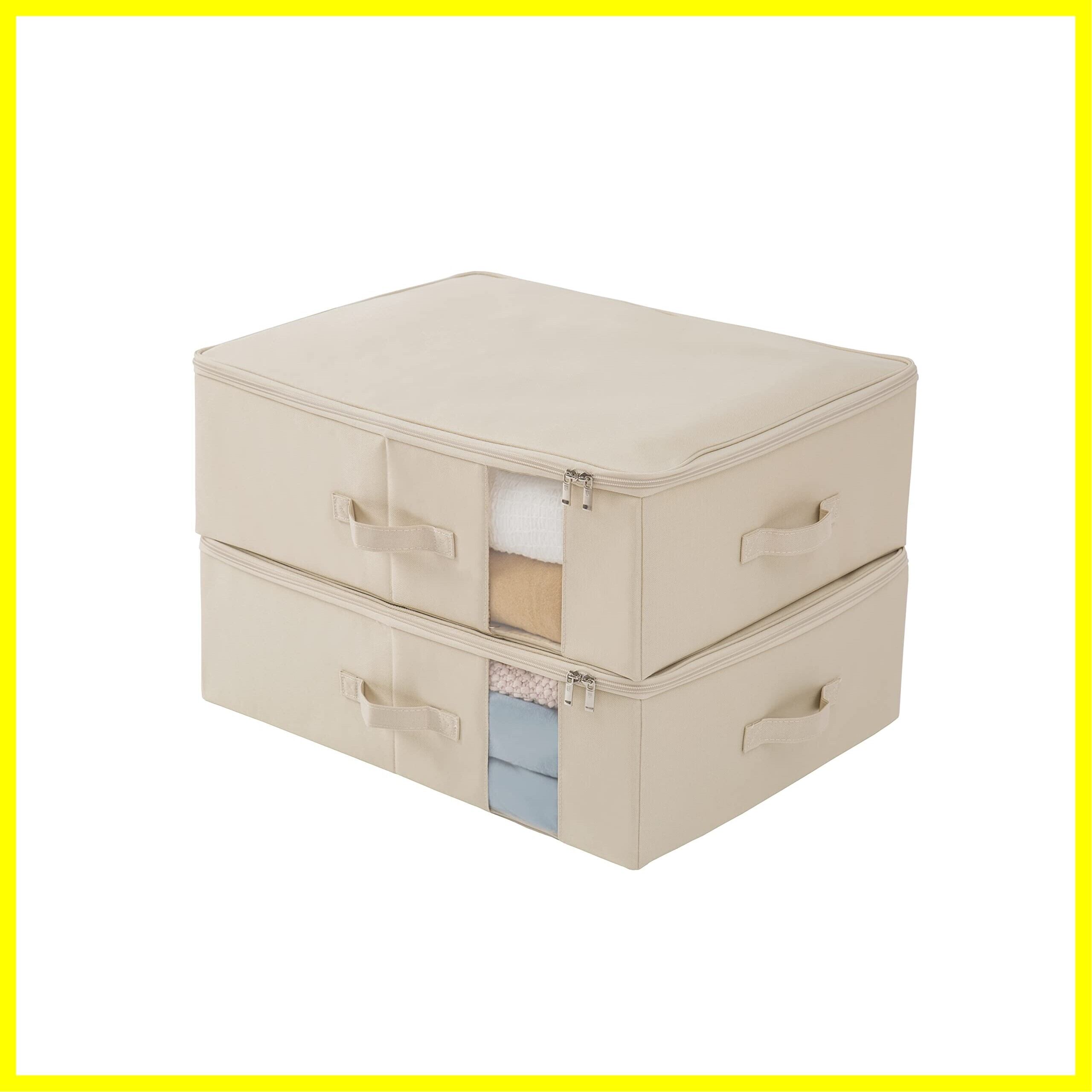TIANZONG収納ボックス 収納ケース 大容量 衣類収納 折りたたみ 取っ手付き ふた付き おしゃれ 布製 衣装ケース 透明窓付き ファスナー (ベージュ, 幅55×奥行42×高さ18cm 2点セット)
