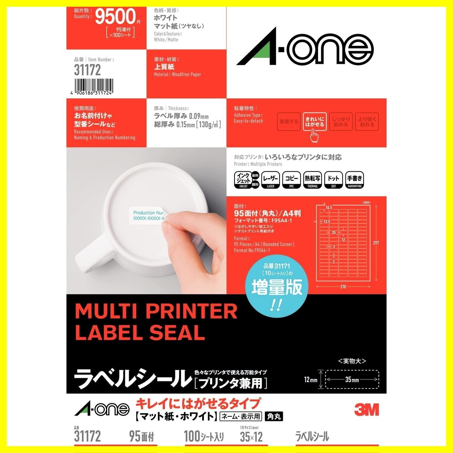 ラベルサイズ:35mm×12mm(5列×19段)