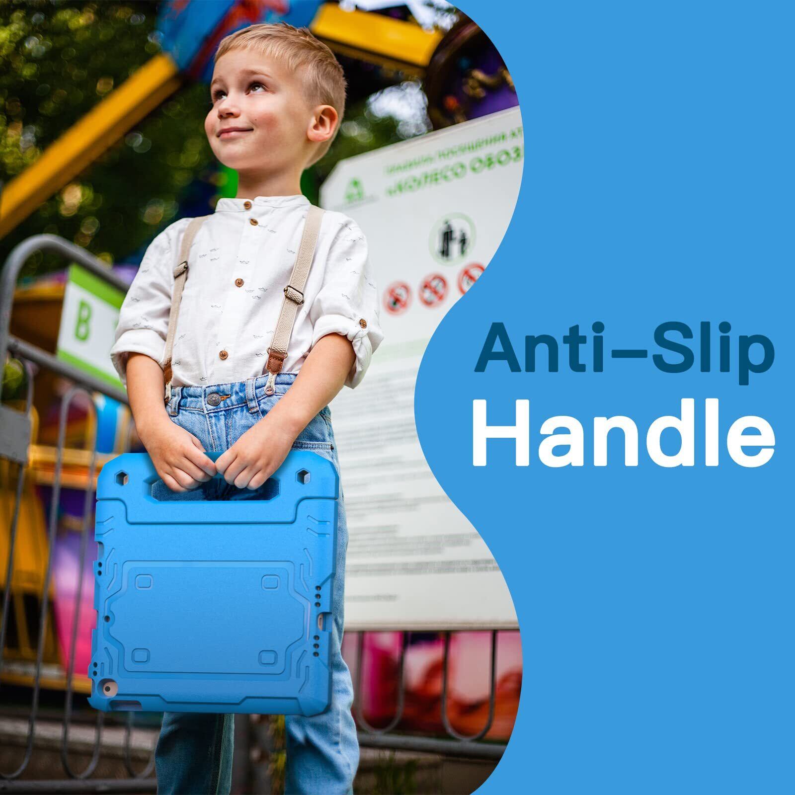 JETech 子供用 iPad 10.2インチ ケース (第9/8/7世代、2021/2020/2019) 液晶保護フィルム付き 耐衝撃 フルボディハンドルスタンド タブレット保護カバー (ブルー)