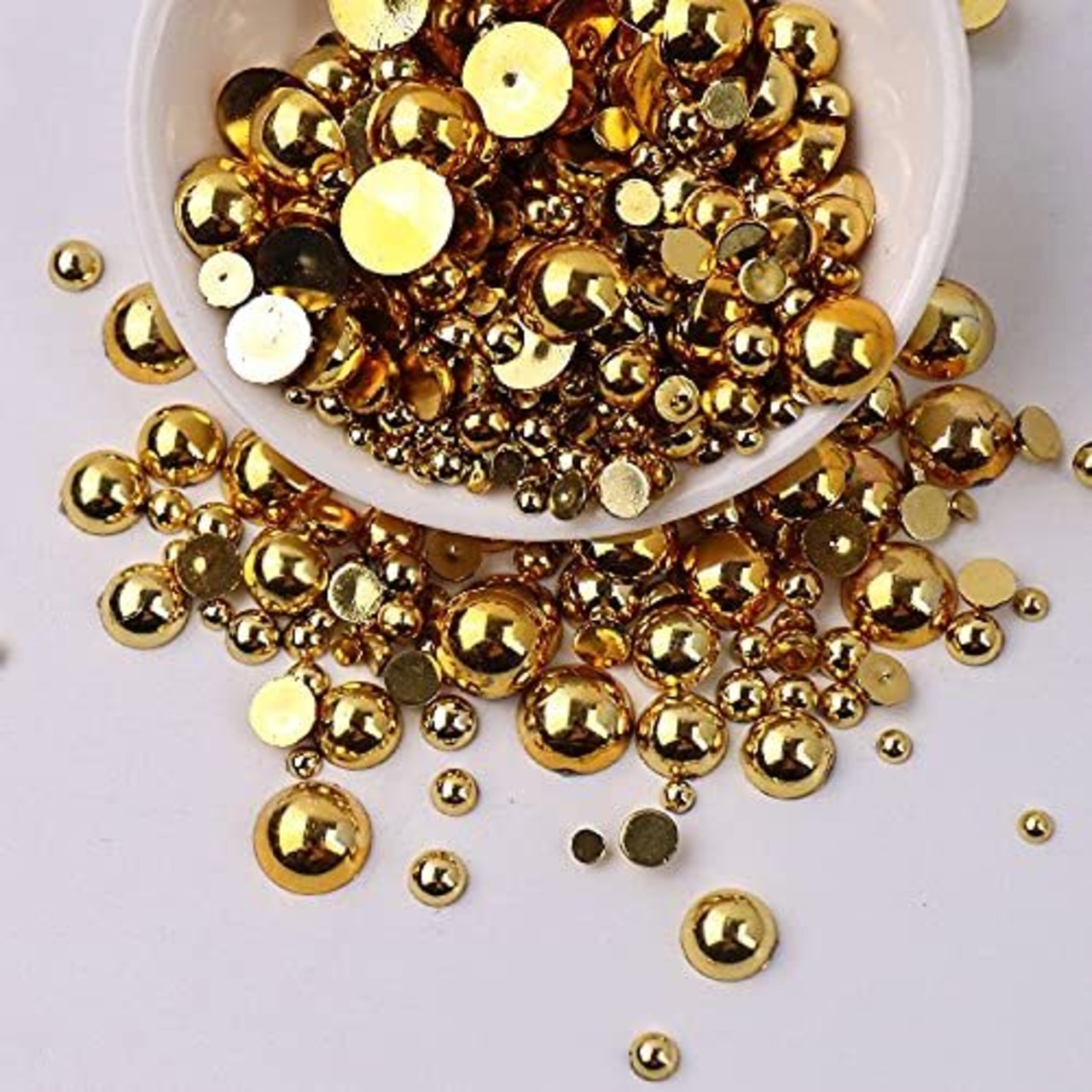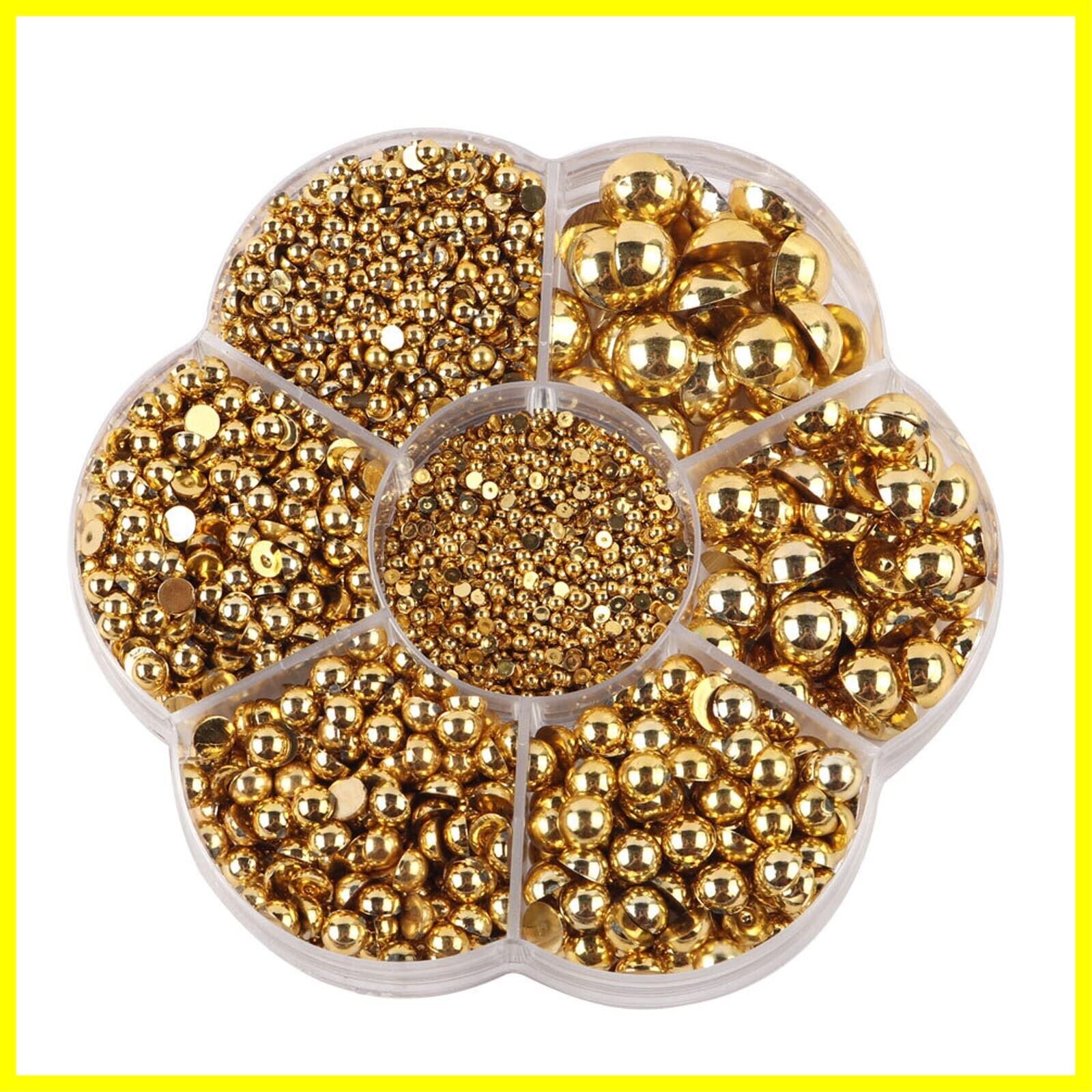 Hitasi 半円パール 3100粒 半球パール ABS パールストーン パールスカボション 2/3/4/5/6/8/10Mm 光沢 半球型 ネイルアート 衣類 携帯電話 手作りアクセサリーパーツ DIY ハンドメイド素材 手作り用品 収納ケース付き ゴールド