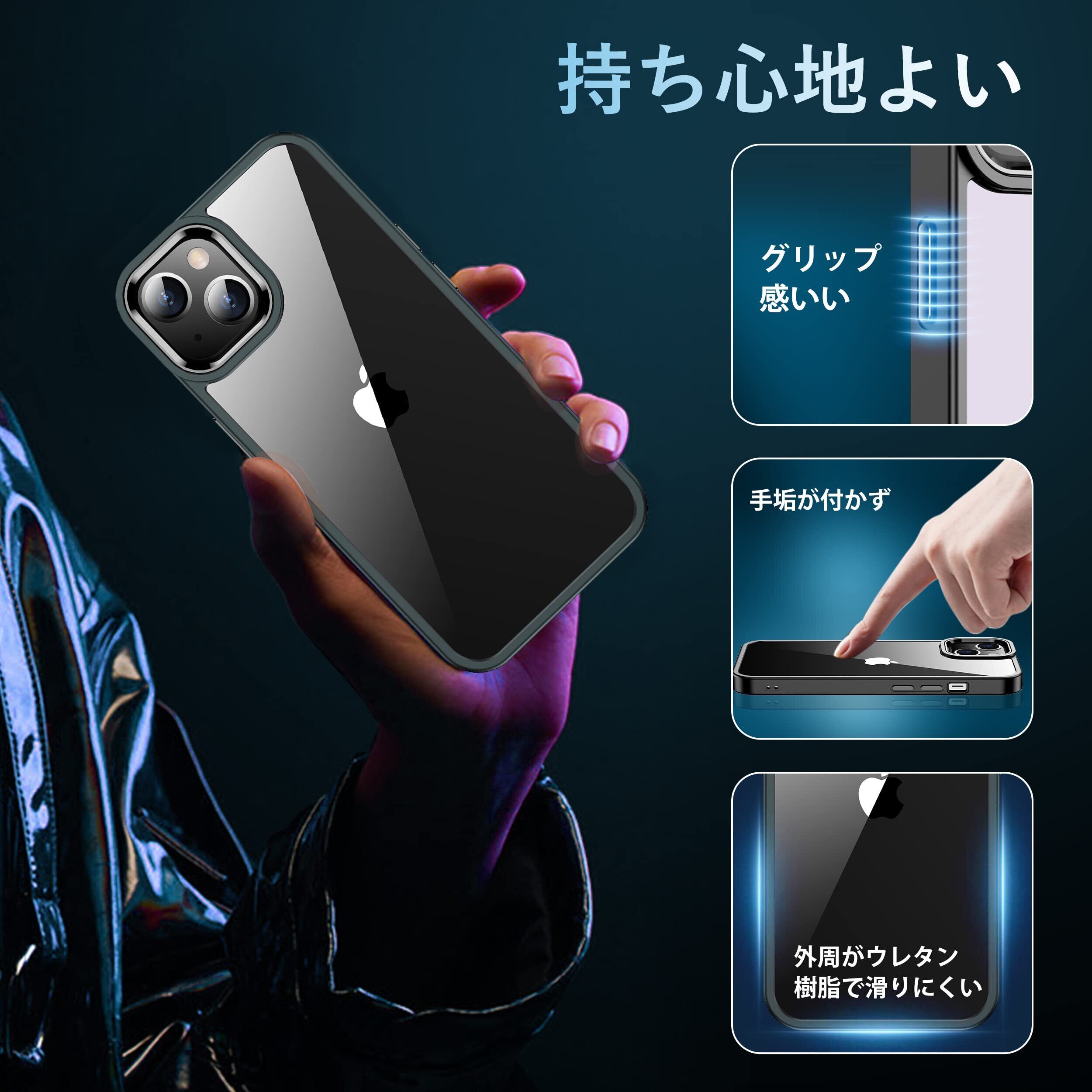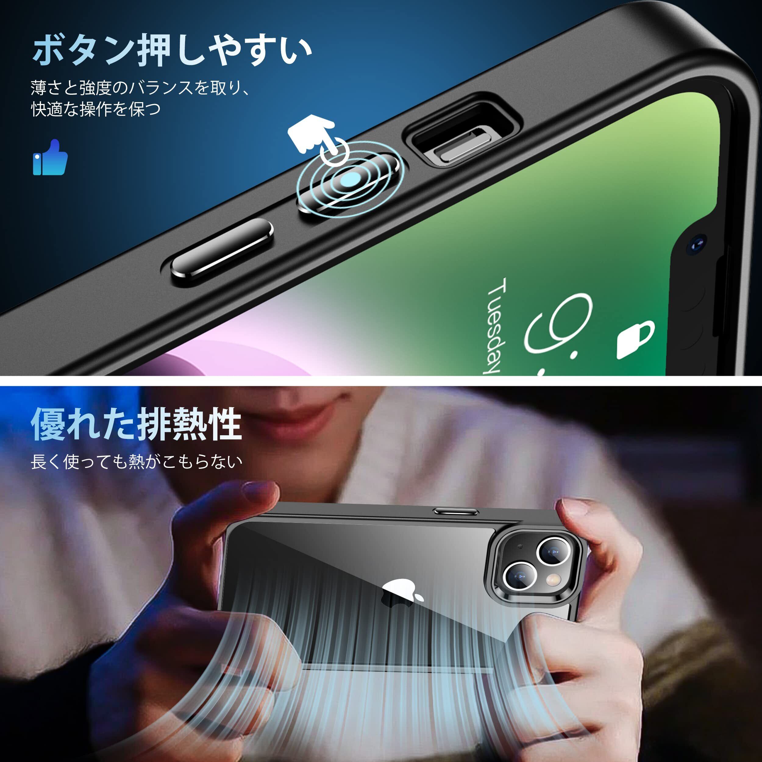 iPhone14 ケース ブラック カメラレンズ保護付き 耐衝撃 黄ばみ防止 アイフォン14ケース 米軍MIL規格 耐久性 SGS認証 アイホン14 スマホケース ワイヤレス充電対応 あいふぉん14 カバー 6.1インチ