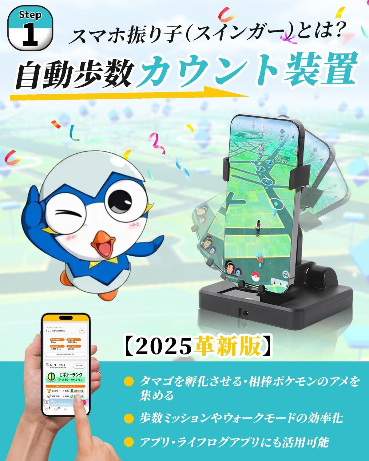 【2025革新版·1時間に約1万歩】振り子 スマホ Rikuto スインガー ふりこ スマホ 横揺れ 回転スイング ドラクエウォーク ワールド 駅メモ! 歩数を自動で稼ぐ 歩行器 低噪音 USB給電式 自動孵化装置 滑り止め 耐磁保護 使用簡単 iPhone&Androidスマホ 対応日本語説明書付