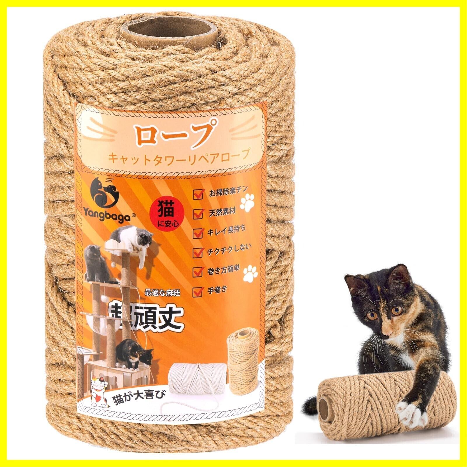 麻ロープ6mmYangbaga麻縄 麻紐 ジュートロープ 爪とぎ 爪を磨き キャットタワー用 キャットクライミングフレームの修理の代替品 手作り DIY 園芸 ボールが 含まれています(50M)
