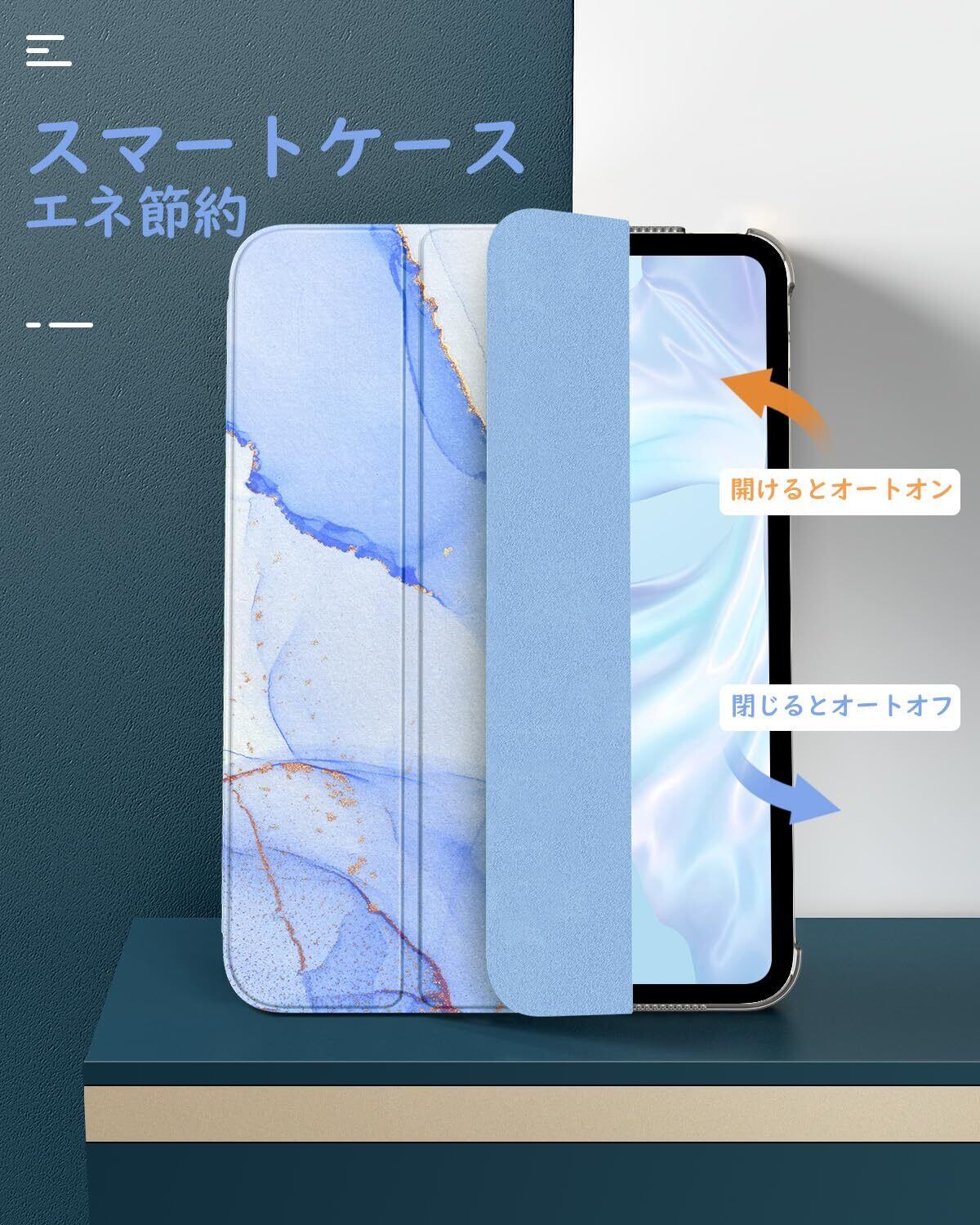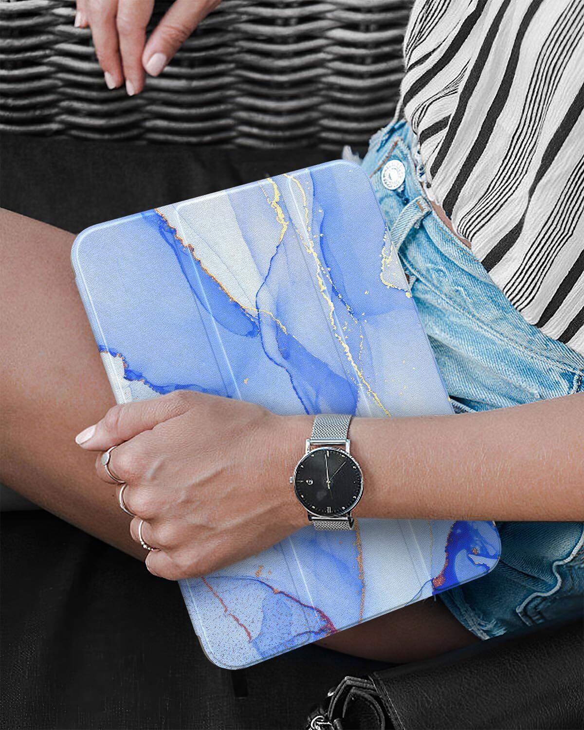 iPad 第11/10世代 ケース 2025/2022 11インチ Dadanism A16 10.9インチ 2025年新モデル アイパッド用 オートスリープ 三つ折り スタンド PU+PC 耐久 Apple Pencil対応 カバー Marble Blue