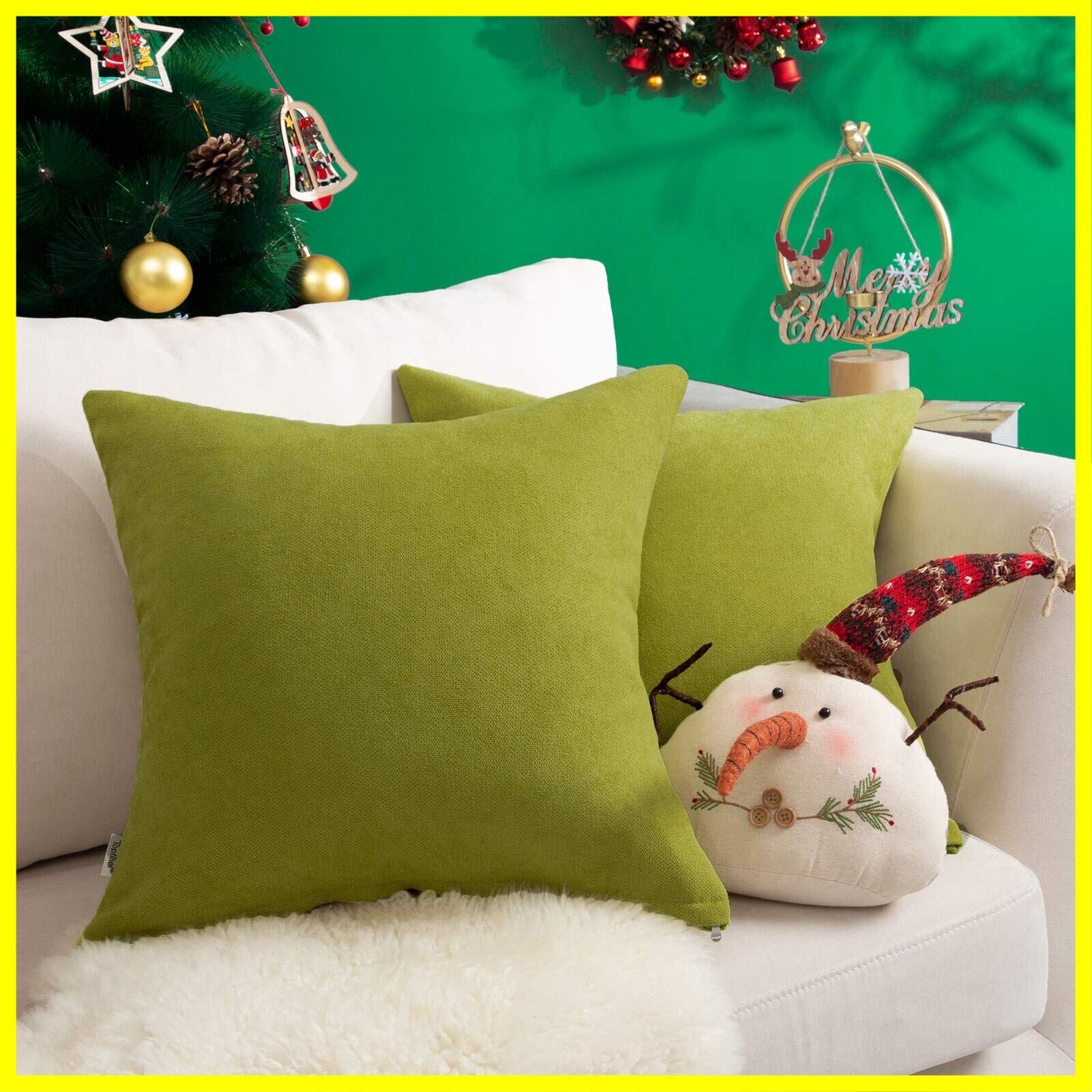 Topfinel クッションカバー リネンっぽい 40×40cm 北欧 おしゃれ 綿麻 無地 ソファ背当て 装飾枕カバー 座布団カバー グリーン 2枚セット(全10色)
