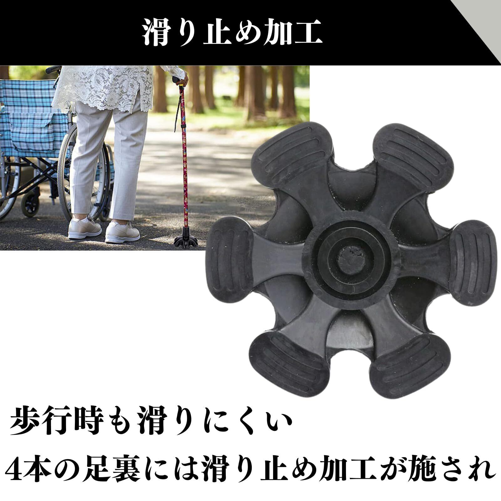 【高品質素材・自立デザイン】耐久性のあるゴム素材を使用し、長期間ご利用いただけます。地面との六つの接触点により、自立するように設計されており、置き場所や杖の収納にも便利です。