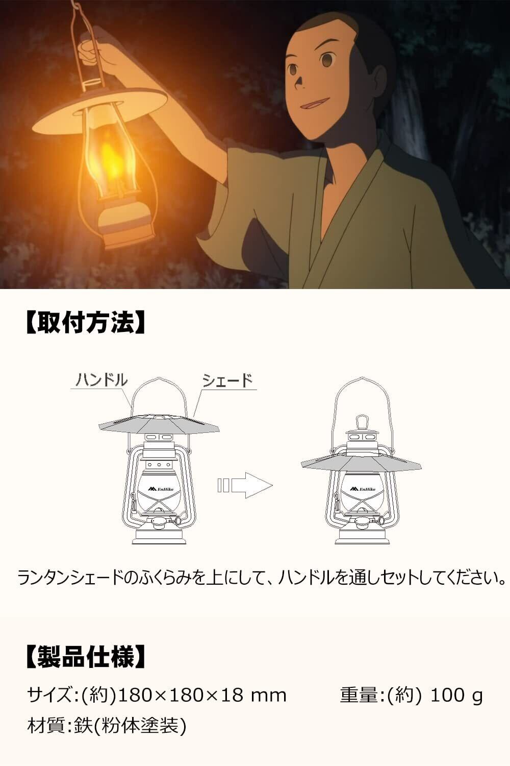 【取付可能な商品】FEUERHAND フュアハンド 276、CAPTAIN STAG オイルランタン (中)、DIETZ デイツ 78 用 シェード。製品サイズ:(約)180×180×18mm、重量:(約)107g、材質:鉄(粉体塗装)