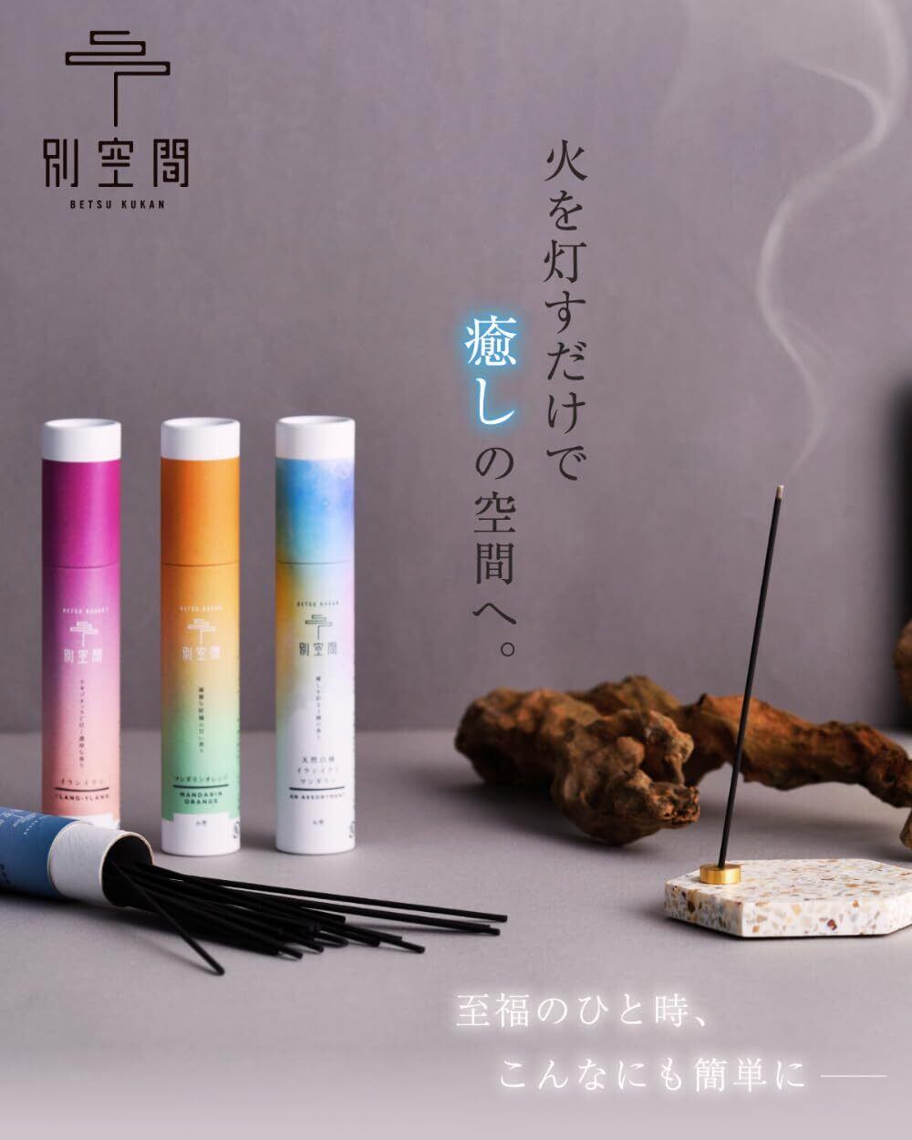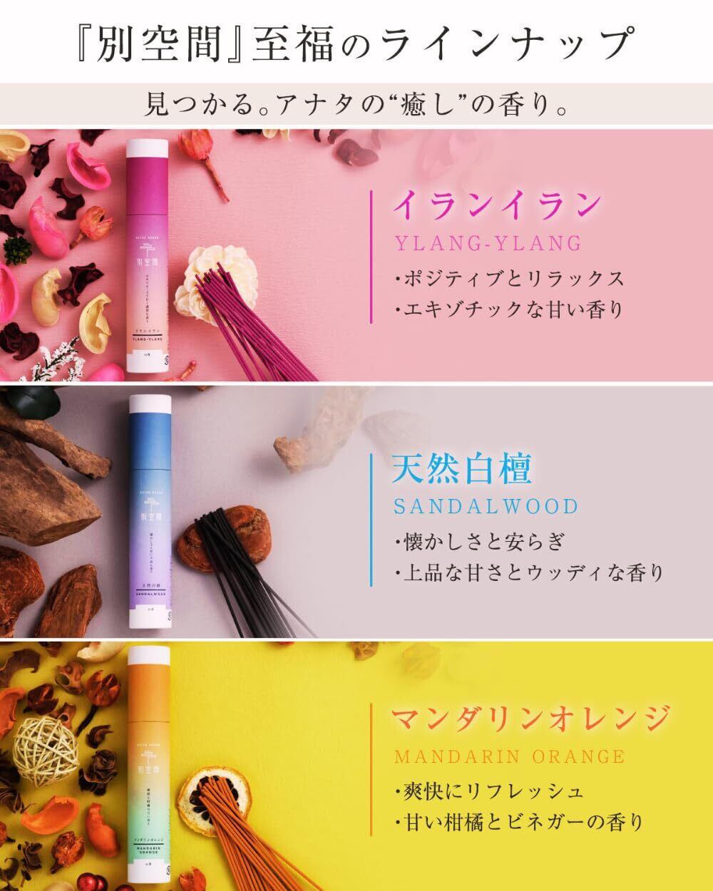 ️【別空間 お香3種類】別空間の至福のお香3種類を一つに。天然白檀、イランイラン、マンダリンオレンジが各種入って、毎日違う香りを楽しめます。