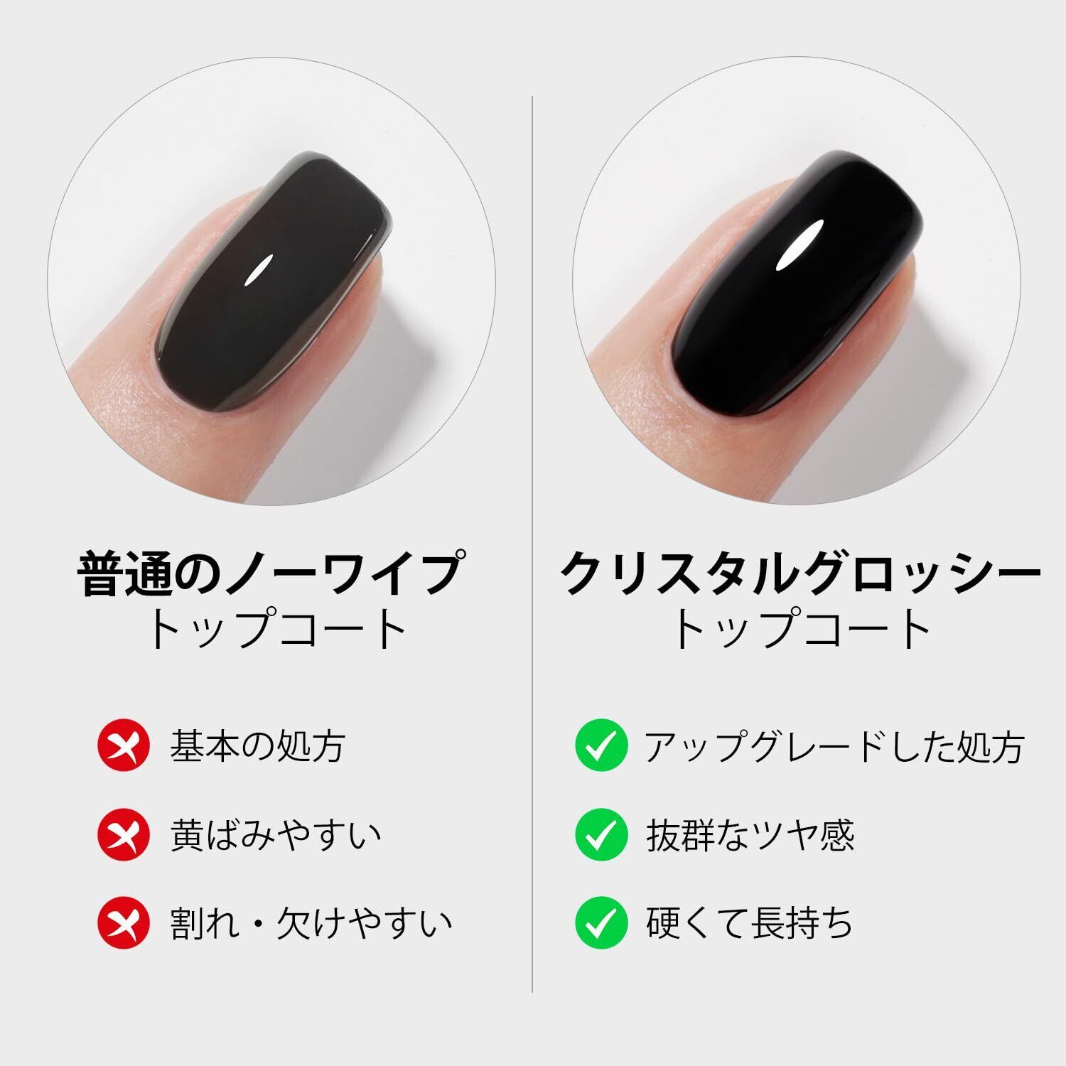 クリスタルグロッシートップジェル:クリスタル級のトップジェルで、驚きのツヤ感の仕上がりに!
