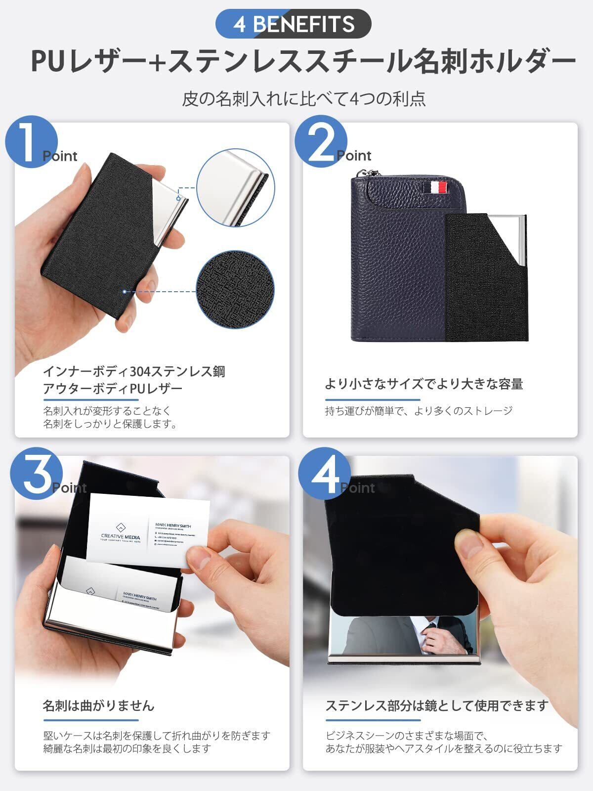 【マグネット開閉式を採用!】 マグネットタイプで1秒開閉、名刺交換の時スムーズに取り出すことができます。マグネットは強力で、持ち運びの際に名刺が飛び出ることもありません。