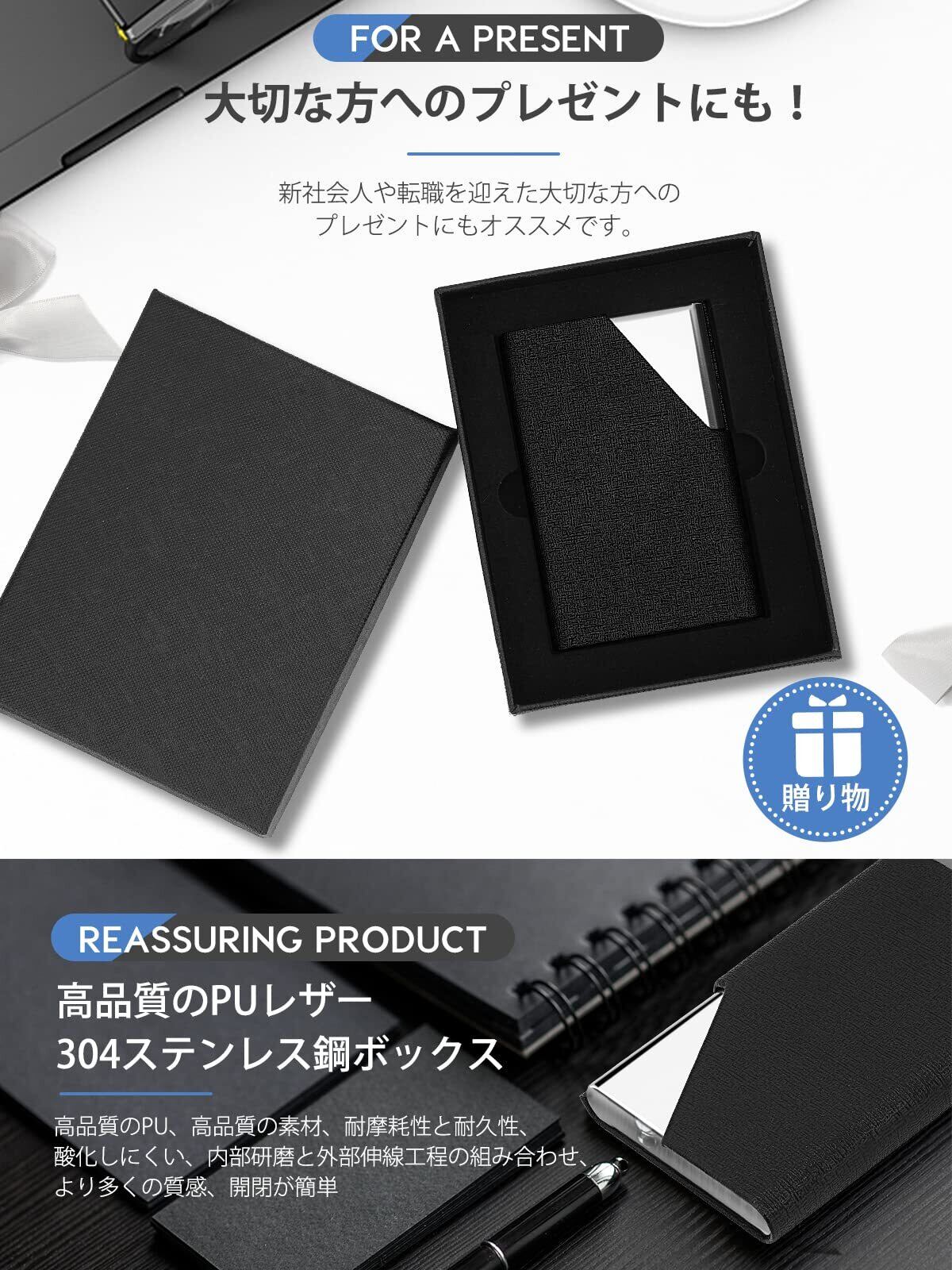 【シンプルで上品なカードケース】ステンレスとPUレザーを組み合わせたツートンカラー。この名刺入れは、シンプルで雰囲気があり、スタイリッシュで、ビジネスにもクラシックにもなります。 周りの人たちに良い印象を与えるでしょう。