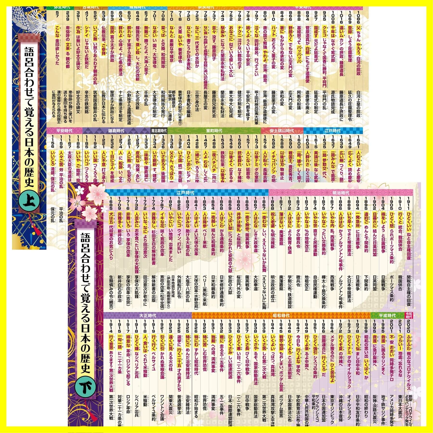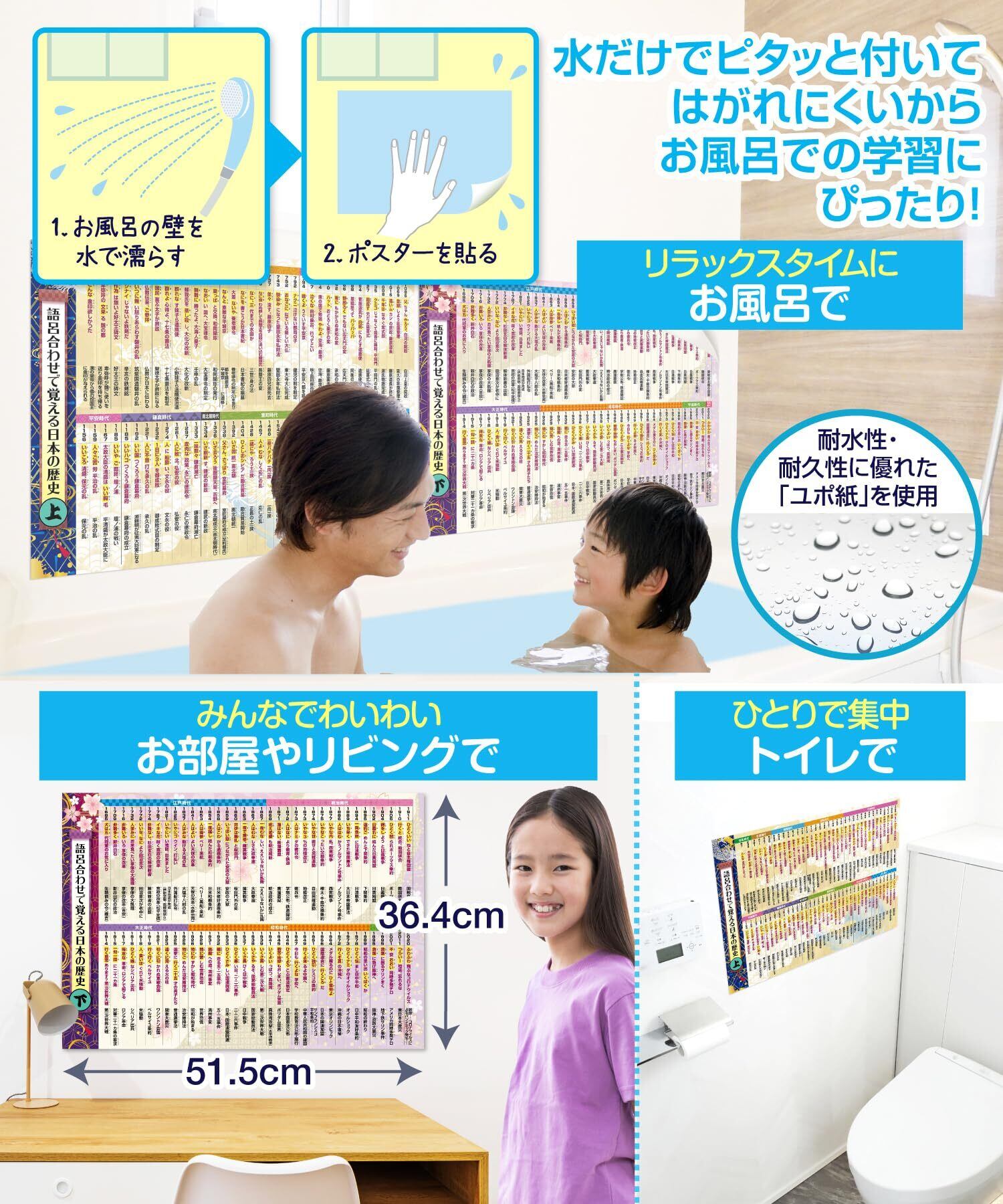 お風呂の学校 語呂合わせで覚える日本史 年表(年号)お風呂ポスター 2枚セット 日本製 和柄デザイン 歴史 社会 中学受験 知育 学習 防水 B3サイズ